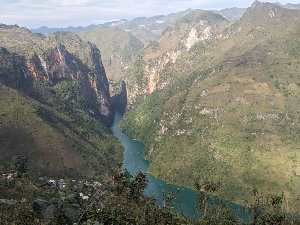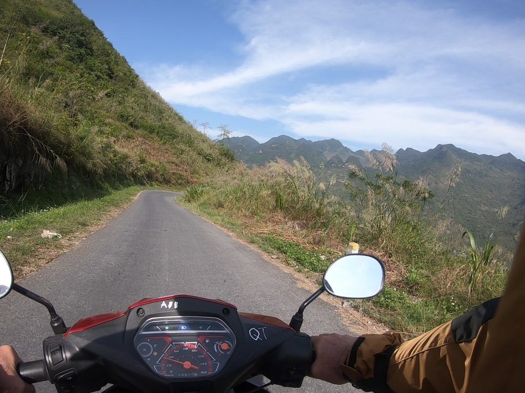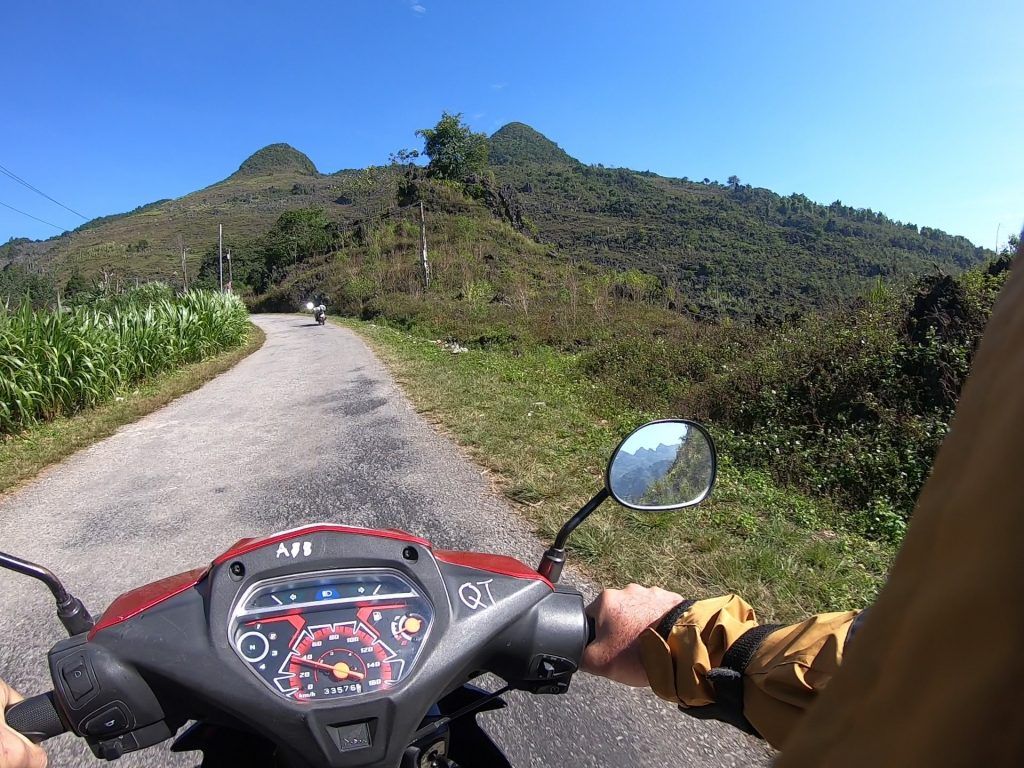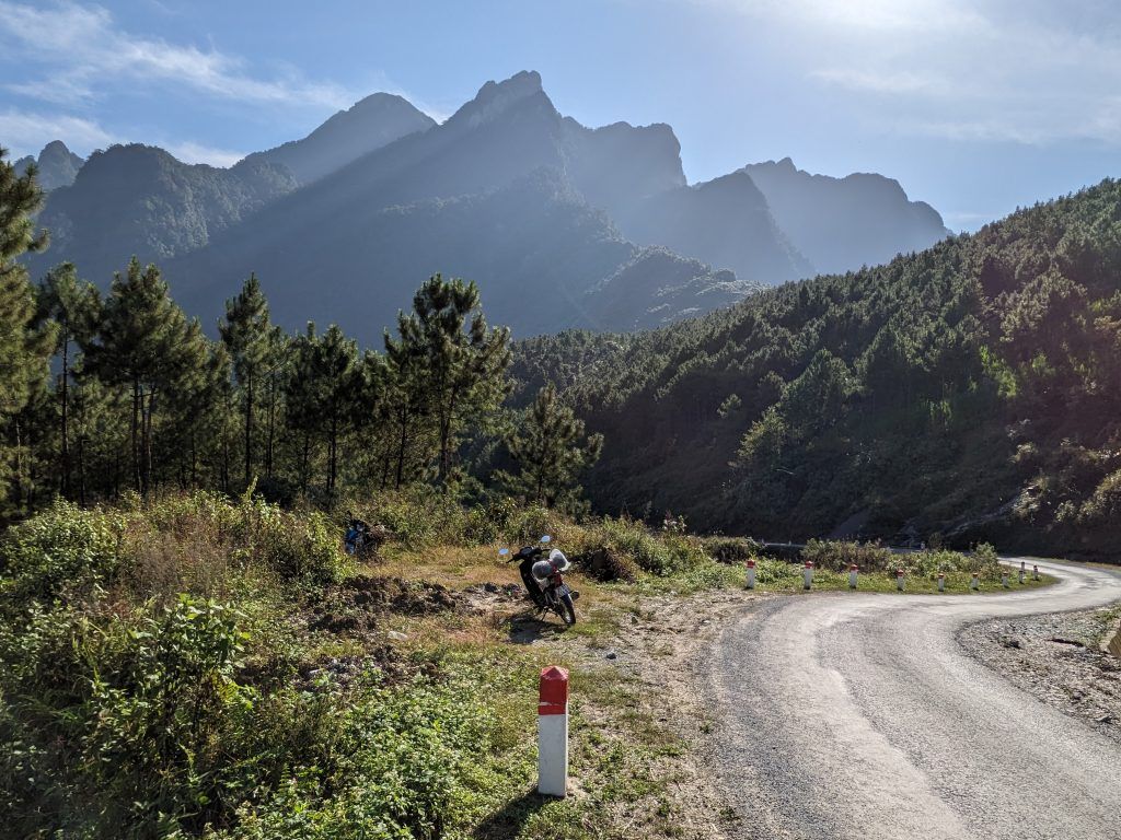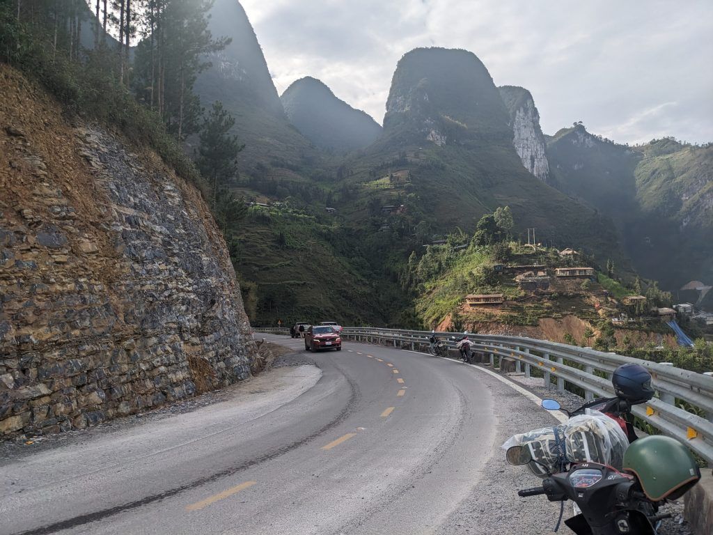 The Ha Giang Loop is a spectacular route through the Northern Vietnam mountains near the Chinese border. What makes it special for motorcycling, besides the stunning landscape, is the insane amount of turns (I don’t think I went more than half a kilometer without having to turn at any point over the four days), and the consistently decreasing and increasing elevation. Nothing is straight nor flat for very long on this route. You also have the adventure of oncoming traffic sometimes encroaching almost completely into your lane on turns. There were multiple times I came to an almost dead stop on steep curves as trucks or buses took up almost my entire lane as they tried to make their turns.