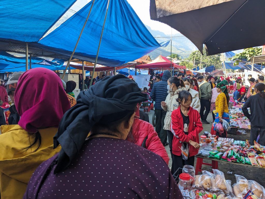 We woke up on a Saturday morning in Du Gia to find it crowded with the weekly market.