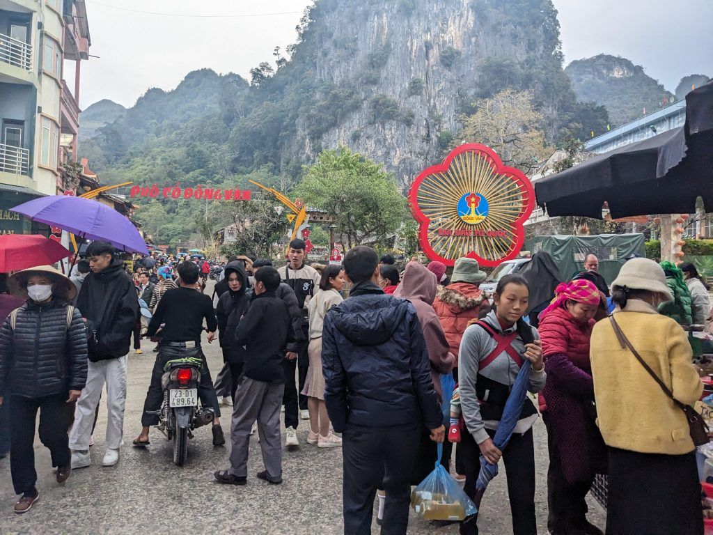Sunday morning in the relatively large town of Hong Van was crowded with Vietnamese tourists.