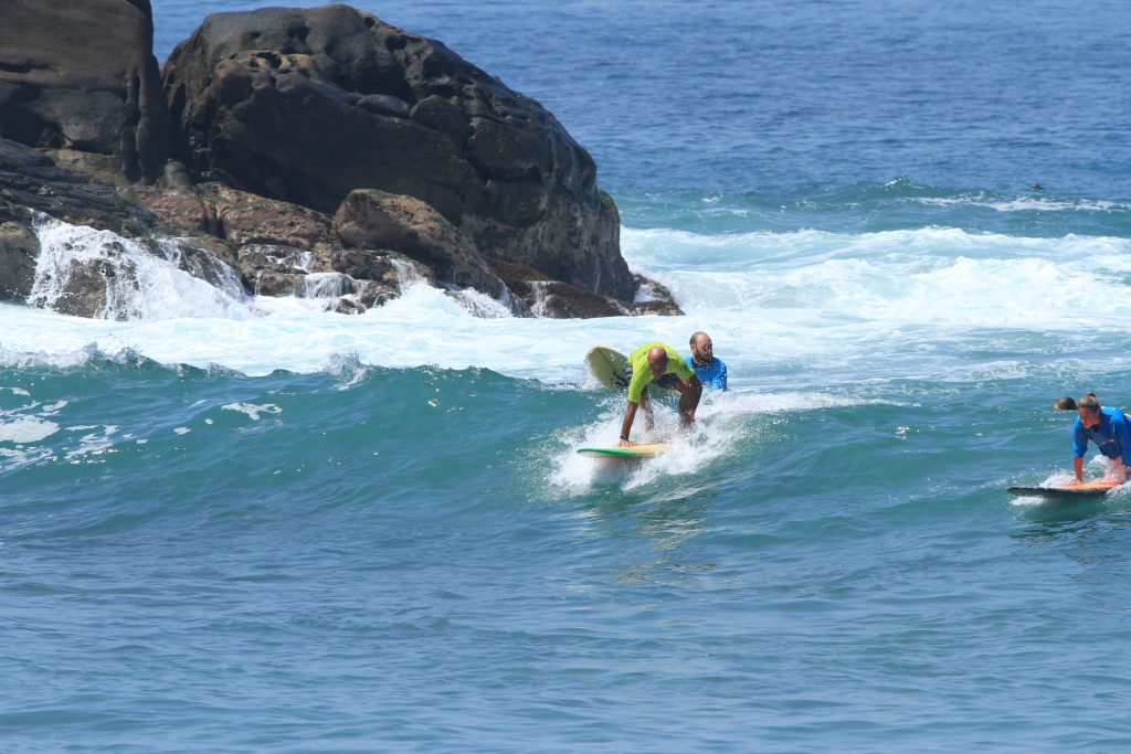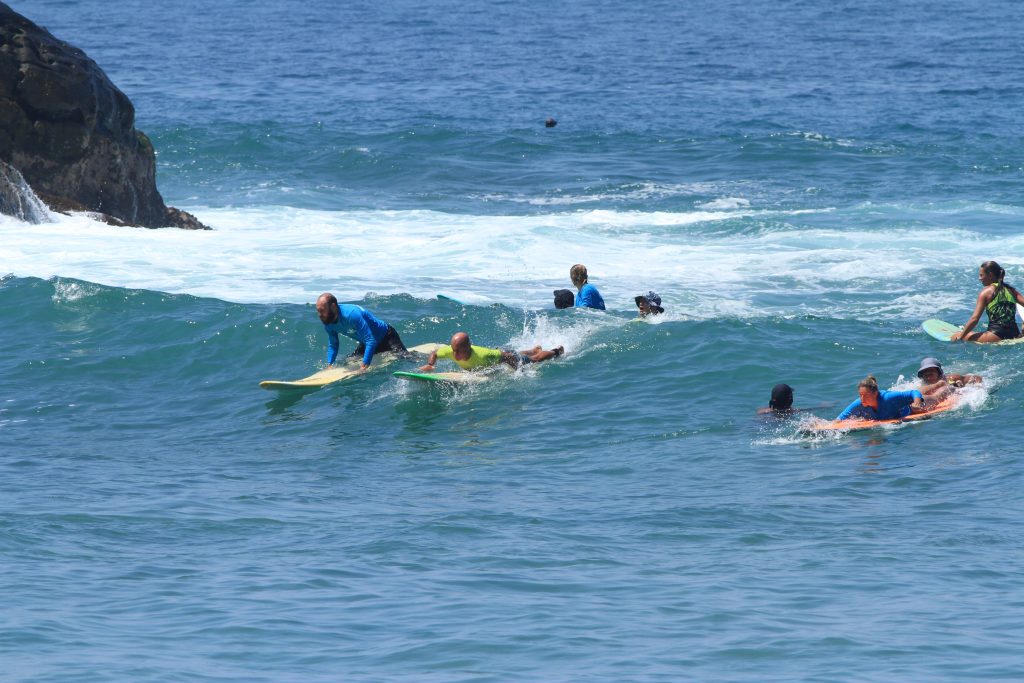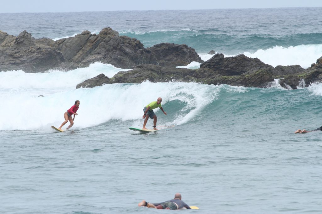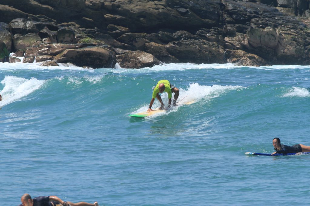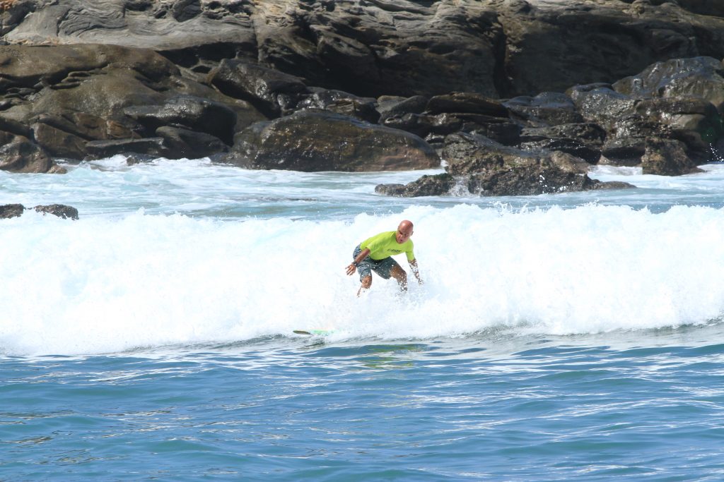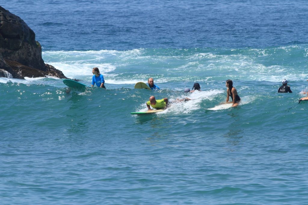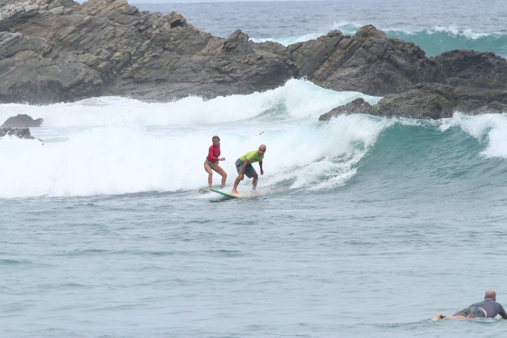 The class board on my last day. The orange star meant they’d be taking pictures. At this point I was catching waves on my own with some much needed guidance from the instructor confirming which waves to take and how to position myself. I’m not sure why the photo senquence ended here. I might have bailed to yield right of way to the girl on my right. If you look down, not straight ahead, when you take off……this happens 🙂Had to bail out since the girl on my right had right of way and I might have hit her if I kept going. In shallow water and bailed before I would have hit some rocks. I got up and the wave closed out from the left. I wasn’t good enough to power through it.