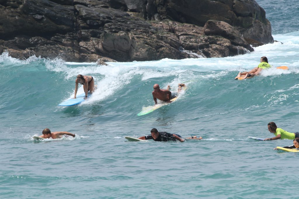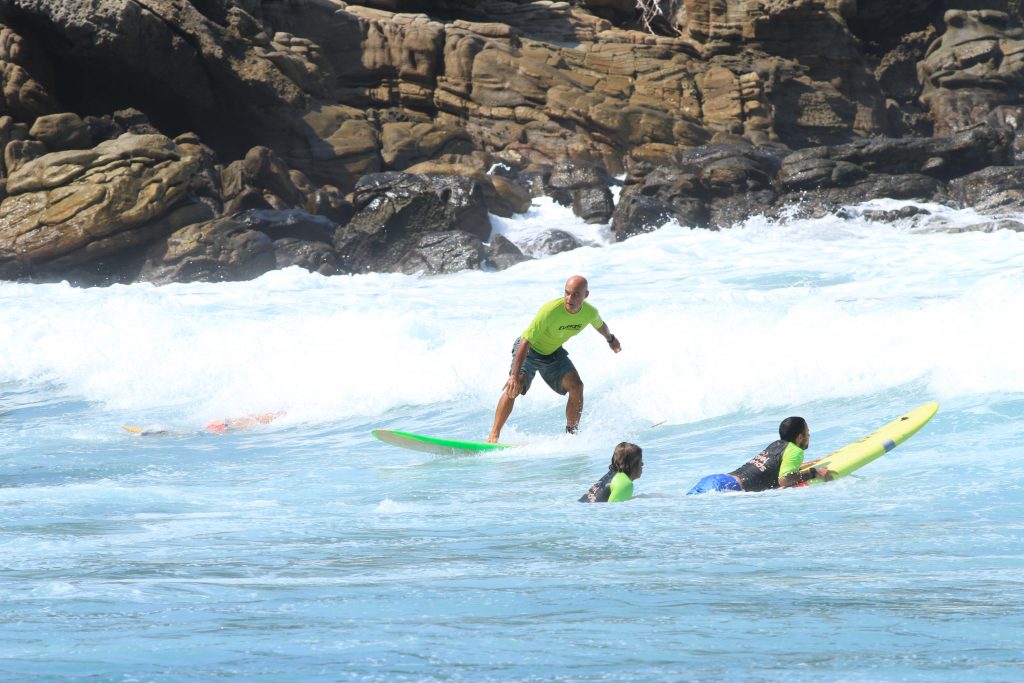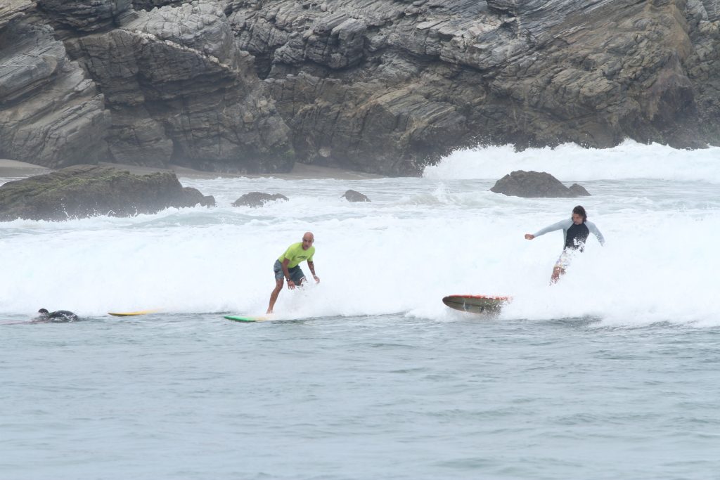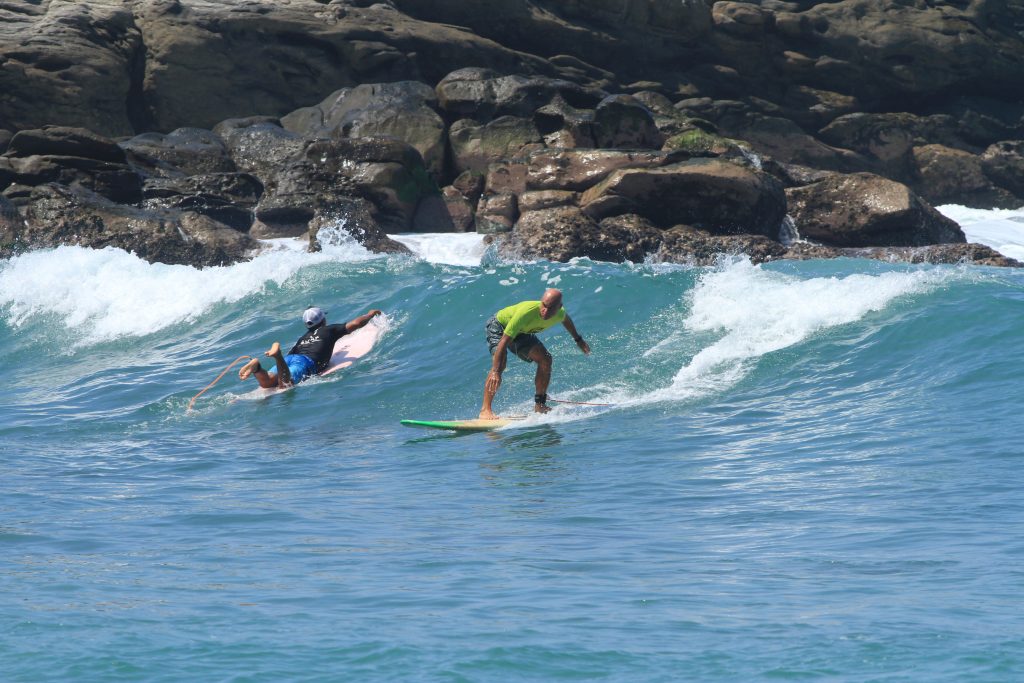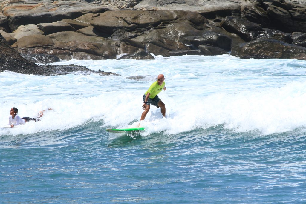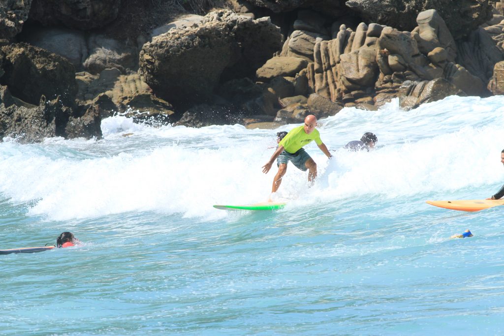 The class board on my last day. The orange star meant they’d be taking pictures. At this point I was catching waves on my own with some much needed guidance from the instructor confirming which waves to take and how to position myself. I’m not sure why the photo senquence ended here. I might have bailed to yield right of way to the girl on my right. If you look down, not straight ahead, when you take off……this happens 🙂Had to bail out since the girl on my right had right of way and I might have hit her if I kept going. In shallow water and bailed before I would have hit some rocks. I got up and the wave closed out from the left. I wasn’t good enough to power through it.