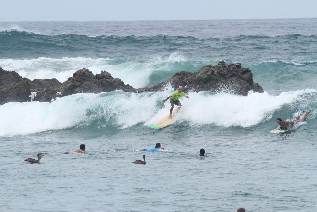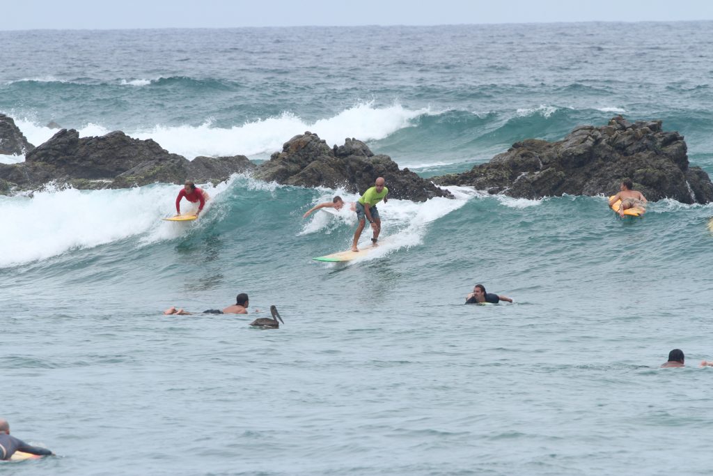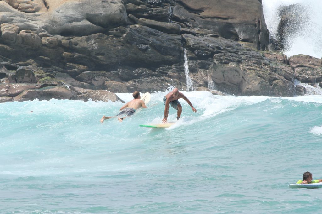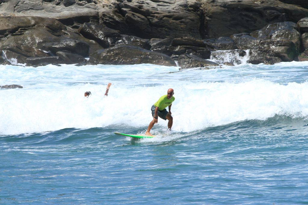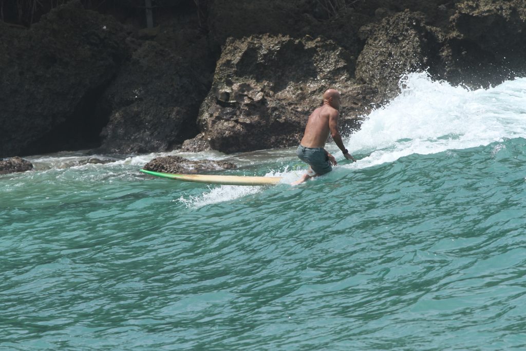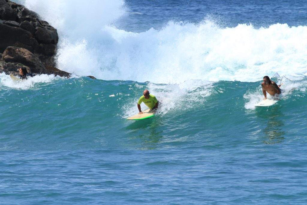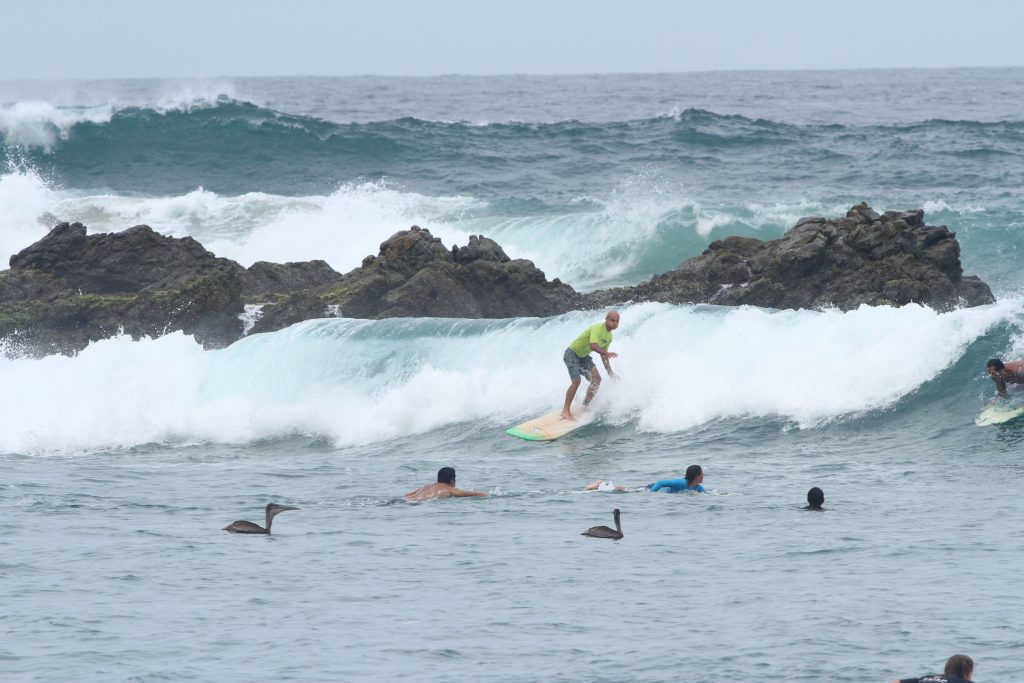 The guy next to me with the hair is a local they call Pina. He calls me “Kelly Slater”. Even when he sees me in town. It’s pretty funny. Here he’s slumming it with me on a smaller wave as he rides in for his last wave. Usually he’s way outside catching the larger waves.