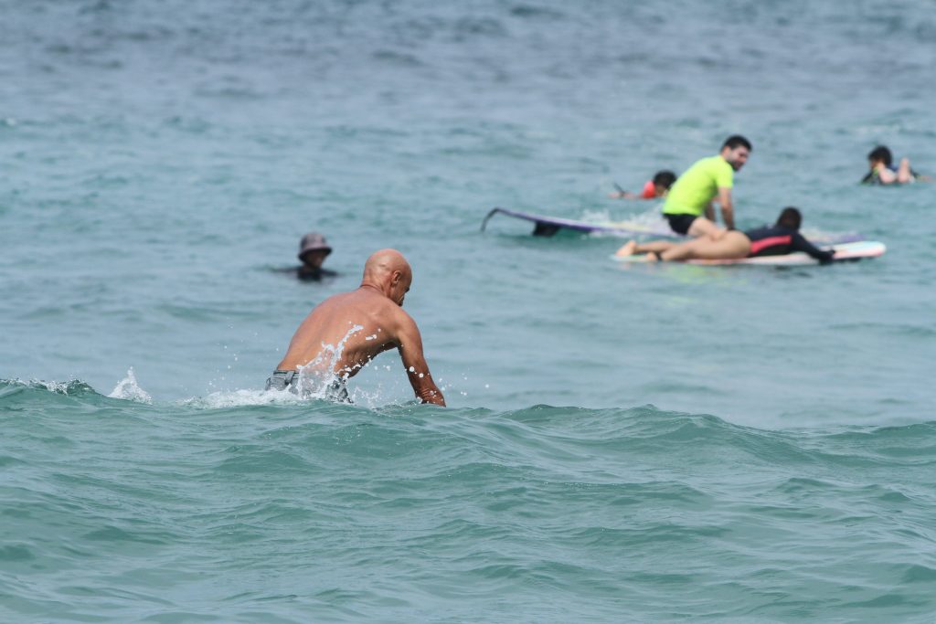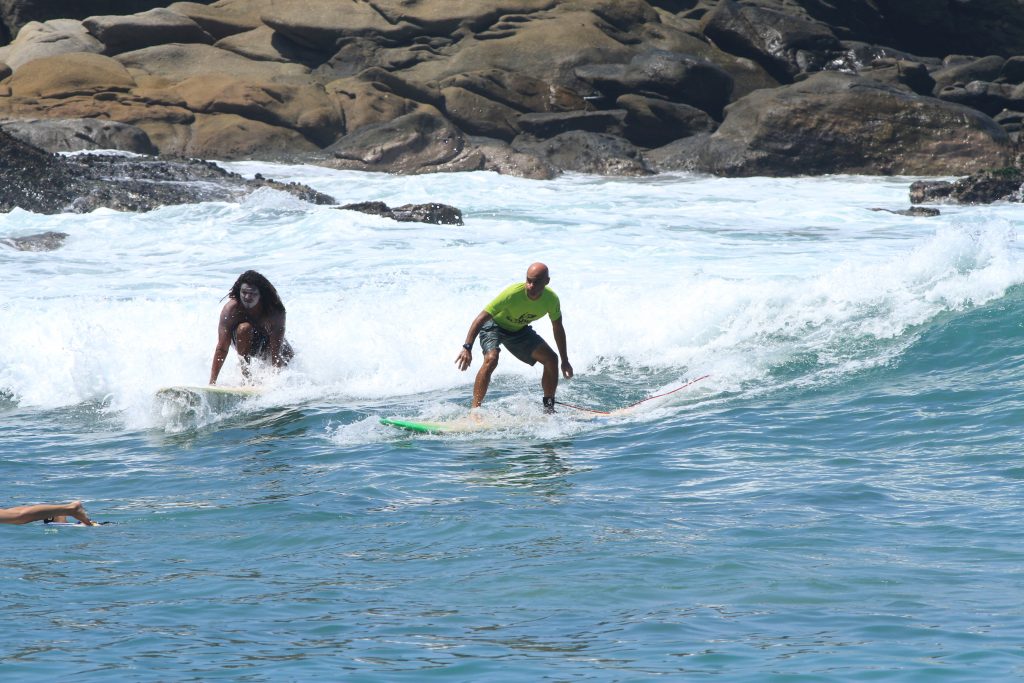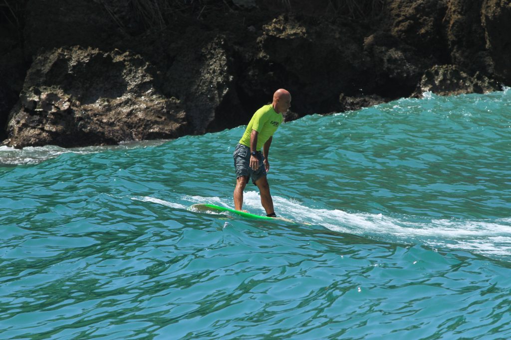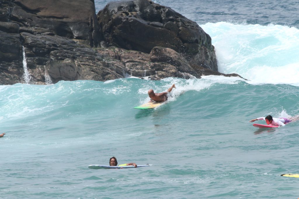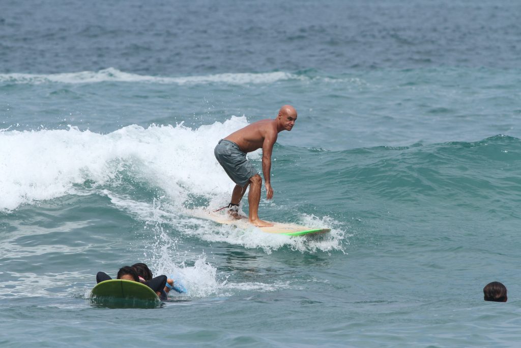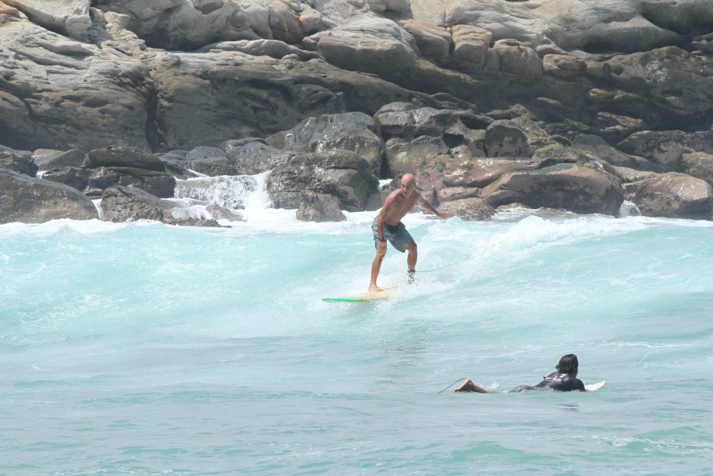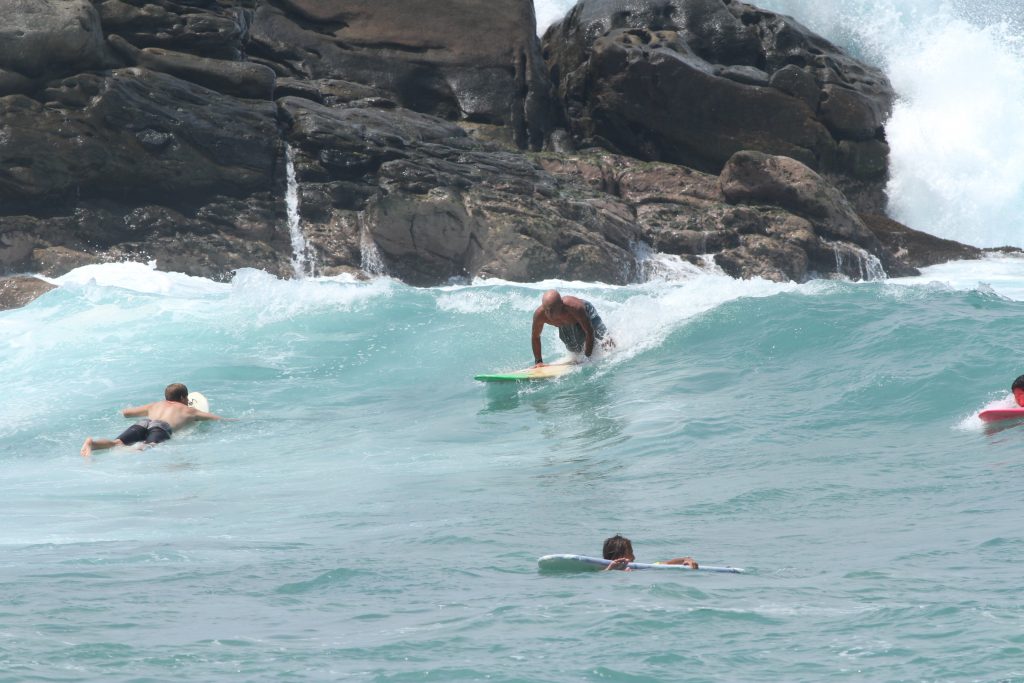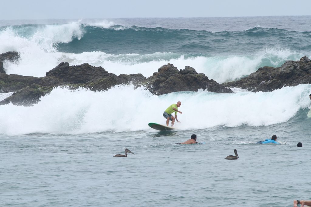 The guy next to me with the hair is a local they call Pina. He calls me “Kelly Slater”. Even when he sees me in town. It’s pretty funny. Here he’s slumming it with me on a smaller wave as he rides in for his last wave. Usually he’s way outside catching the larger waves.