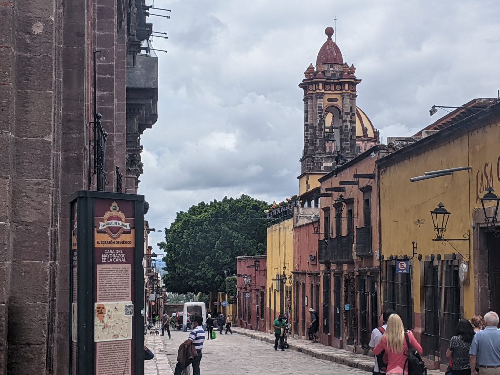 From what I’ve seen so far, San Miguel Allende is the grand dame of Mexico’s colonial cities. Its colonial core is small and incredibly well preserved. There is estimated to be between 20,000 and 25,000 foreign residents, primarily Americans and Canadians (mostly retirees). It’s also a huge tourist attraction for wealthy Mexico City residents, less than four hours away by car. This influx of capital shows. There are a ton of boutiques, boutique hotels, art galleries, high end restaurants and stylish coffee shops throughout the small central core. The first day I was here I even saw two Teslas navigating the tight, cobblestone streets; the first I’ve seen anywhere in Mexico outside of Mexico City.