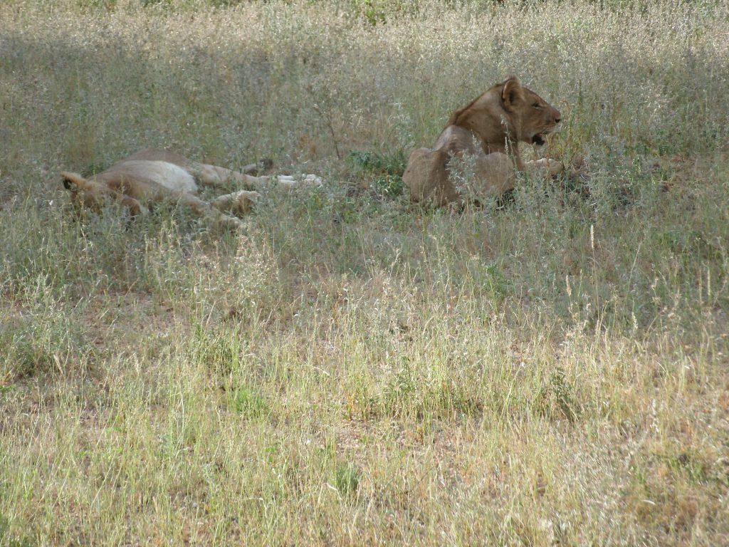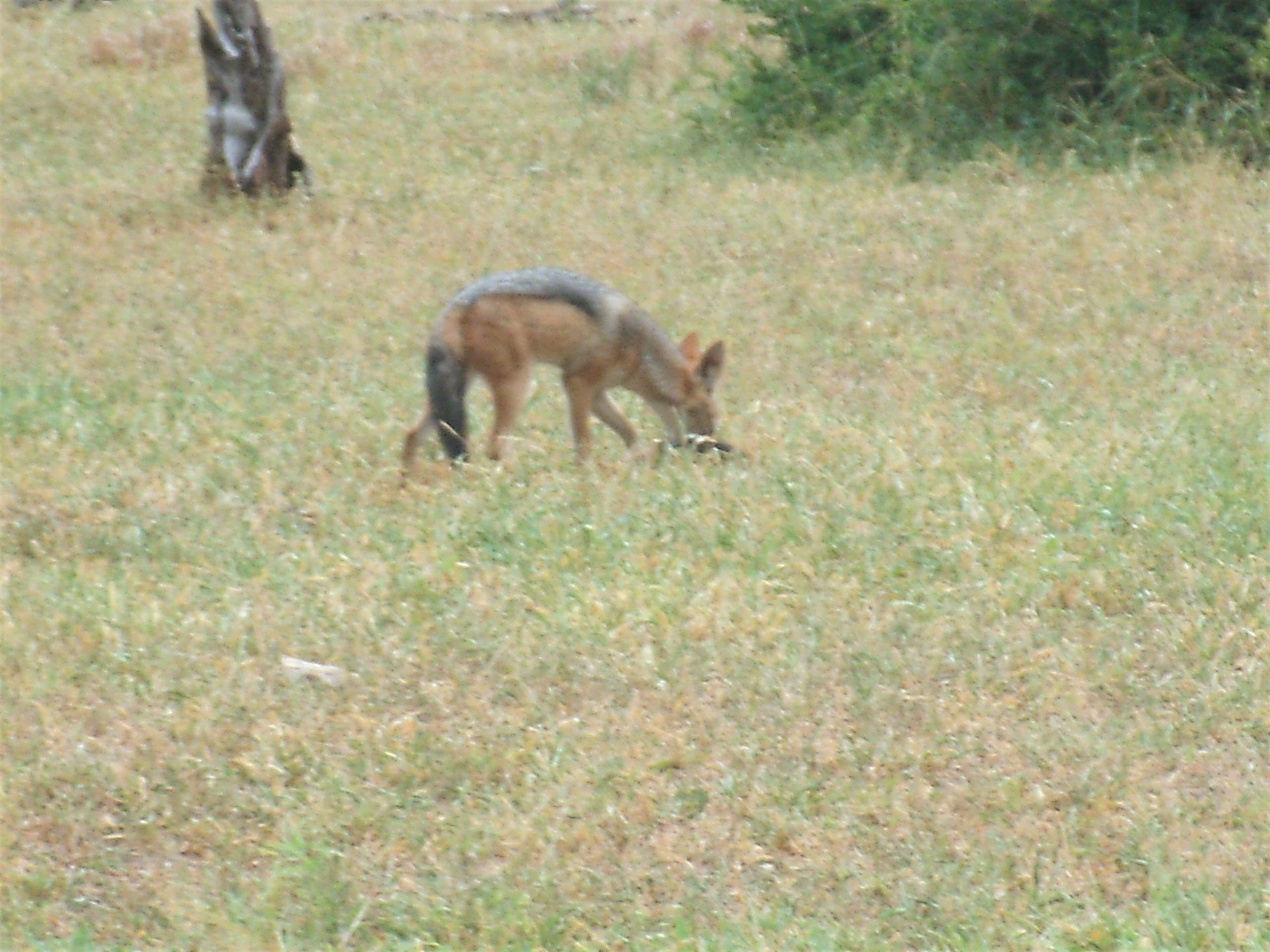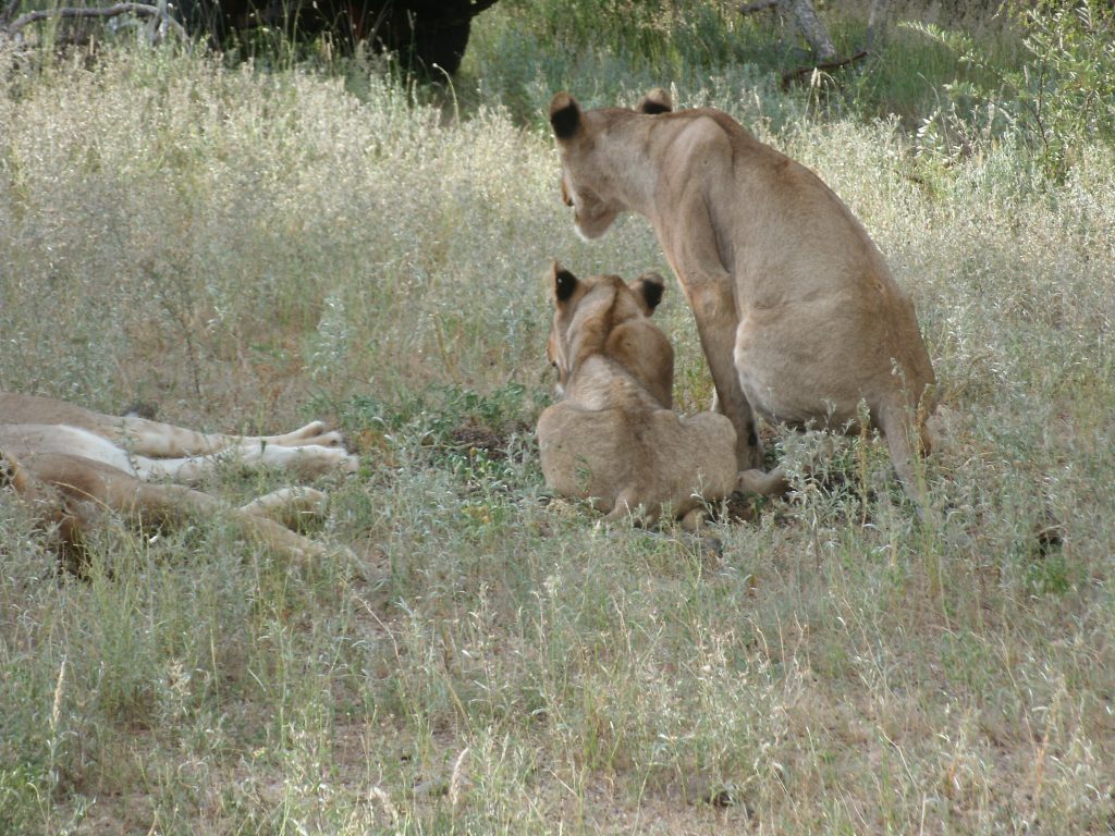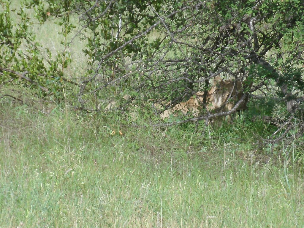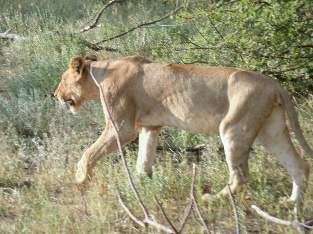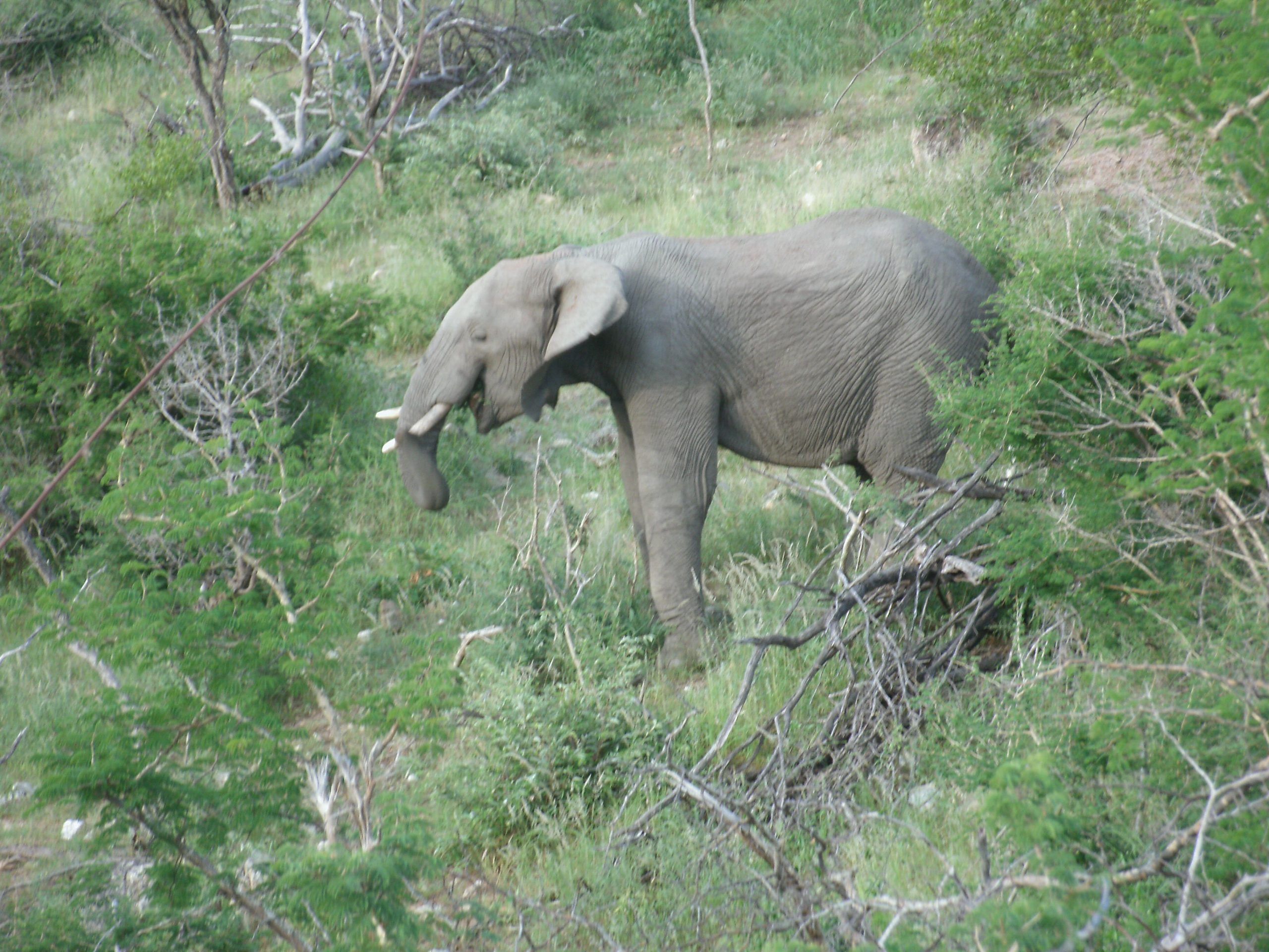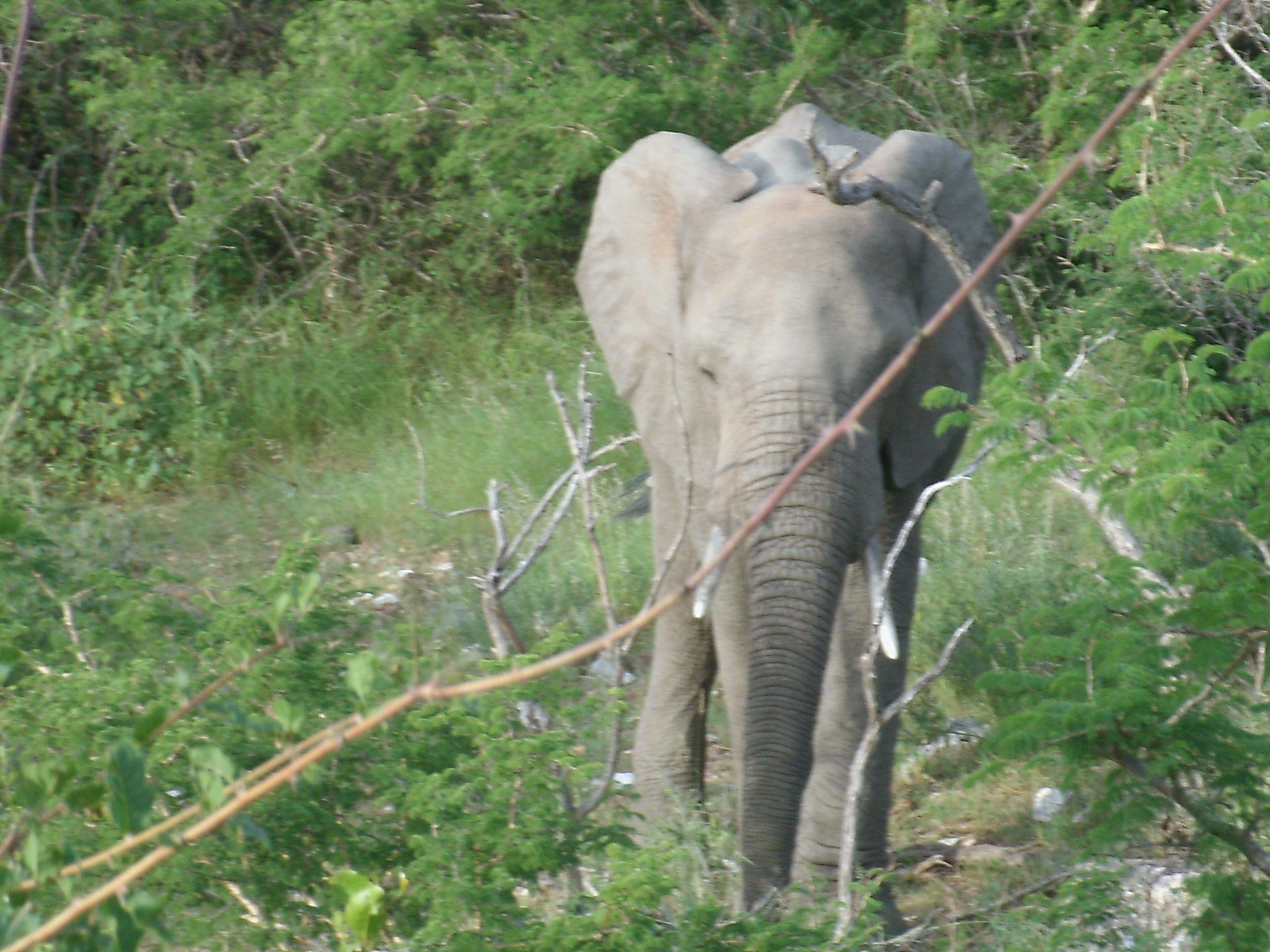 Sat by a pride of around 10-15 lions for a bit. It was very peaceful. They were all panting heavily in the heat. Bernard, our driver, then heard about some fresh rhino droppings. So we headed to that area and he spotted the rhino deep into the bush. It was amazing that he could see the animal. He drove in and we spent some time right near it as it grazed. It was a male black rhino. Had a BBQ outdoors and there was a hyena just past the fire waiting for scraps.
