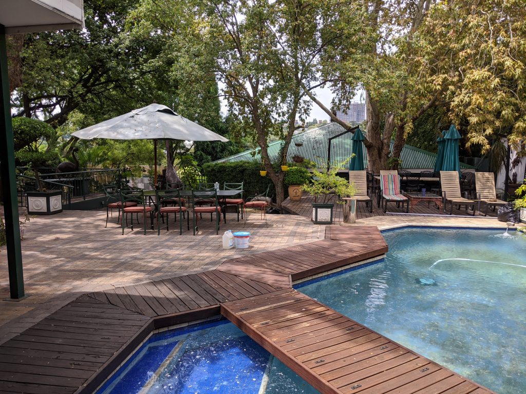 2/6 – Arrived in Johannesburg after overnight flights from LA to London and then from London. Walked to Elizabeth Manor guest house then walked to mall for lunch. Walked around mall for a while. Watched Joker movie back at guest house. Then took Uber to/from the mall for dinner. Huge rainstorm that night and the power went out most of the night.