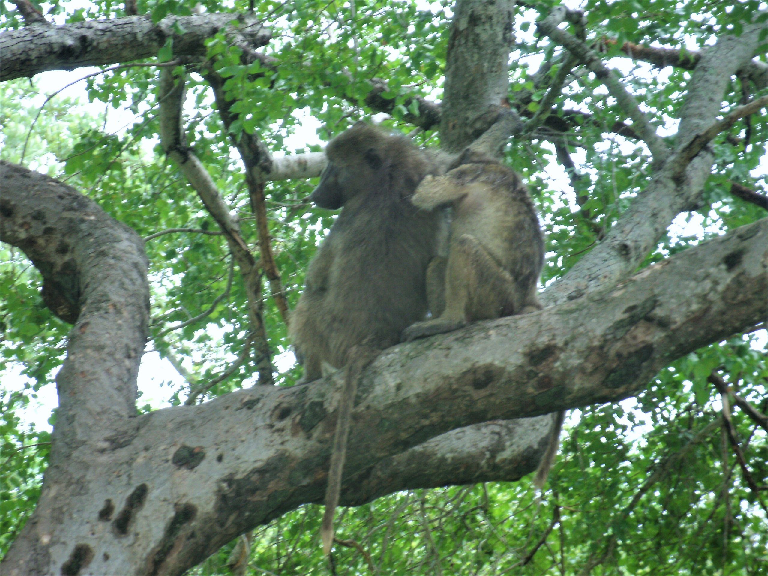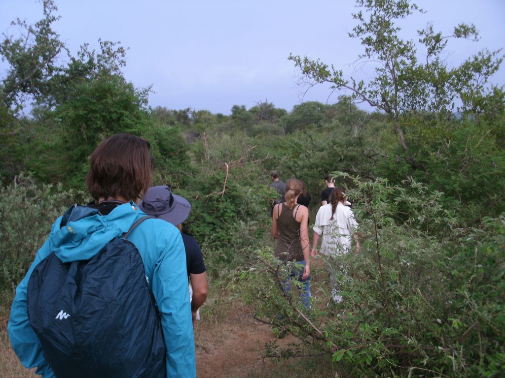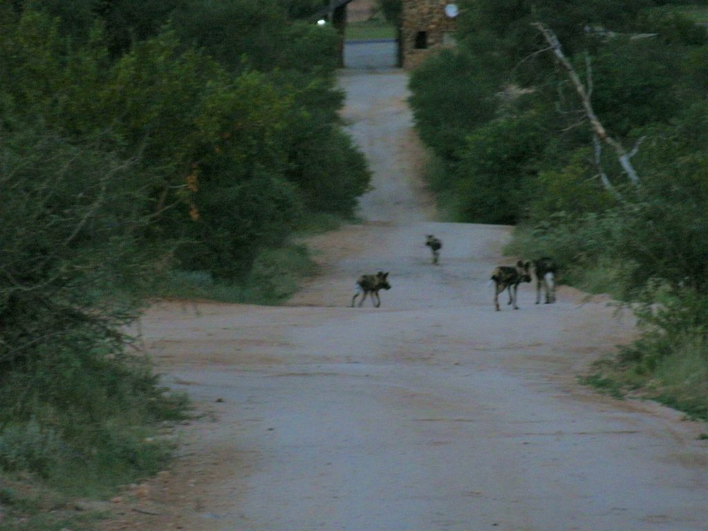 2/8 – Up at 5am for a snack then a game walk. Right outside our lodge we saw impala running, then we saw a pack of 7 African dogs. There are only about 500 left in South Africa, so seeing 7 was very rare. We watched them for a while. Even the guides took pictures. Then we drove to the place for the walk. Walked for over 2 hours and saw birds, unique trees, stopped by a termite mound, then saw a line of ants attacking some termites under some elephant dung. Had a snack by Oliphant River. Saw a pack of baboons. Stopped by a termite mound with a tree growing outside it. Guide took the head off and I ate a live termite. Tasted like a crunchy prawn shell. It’s an amazing source of protein.