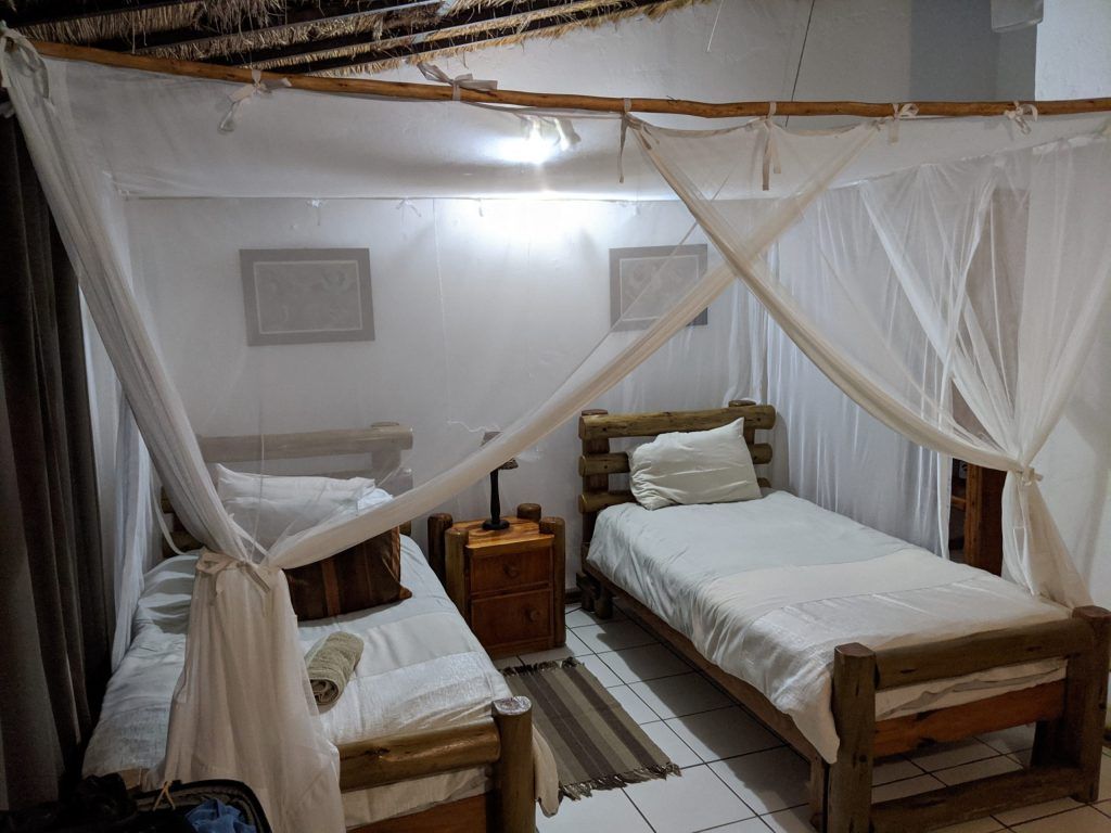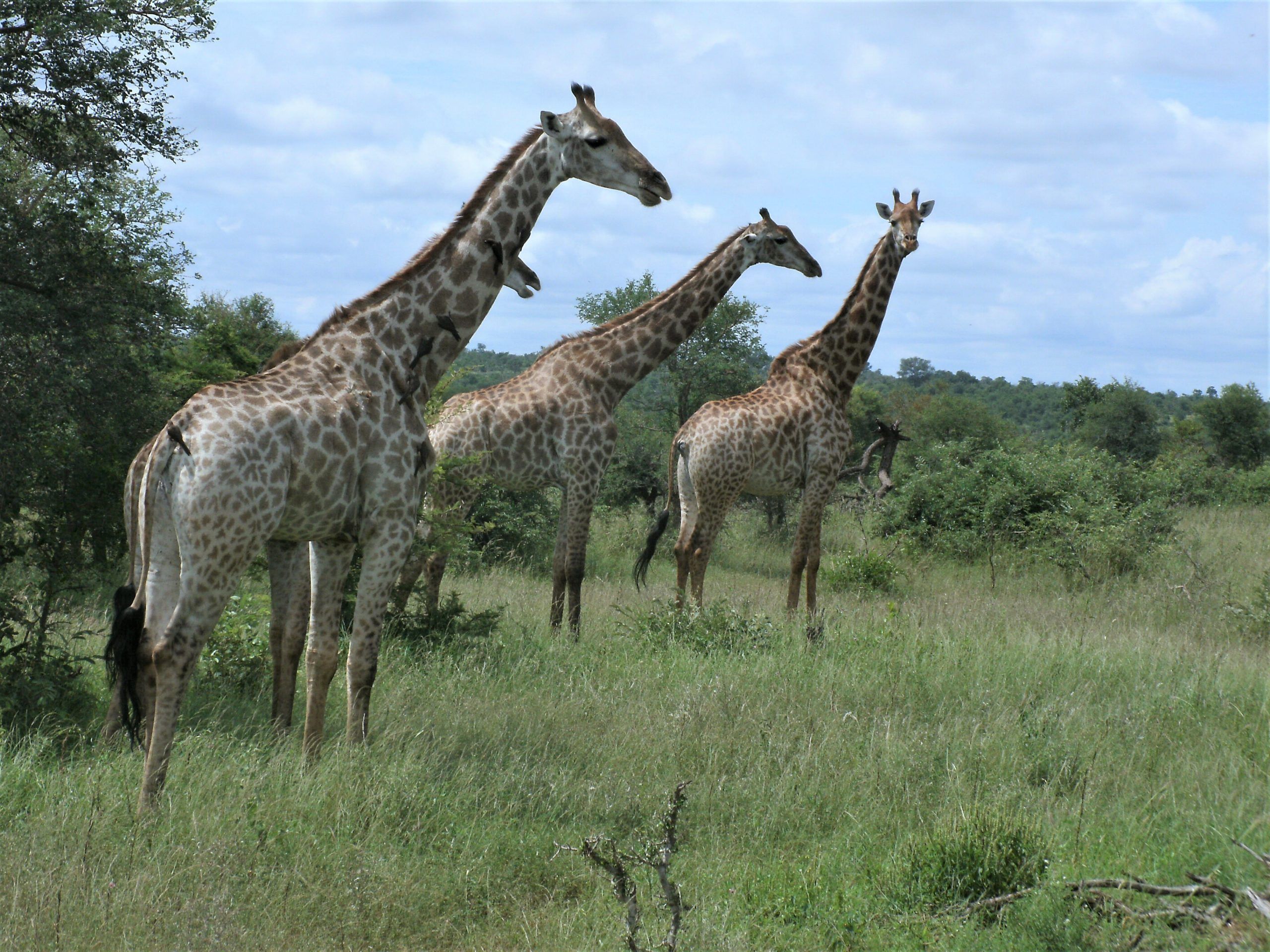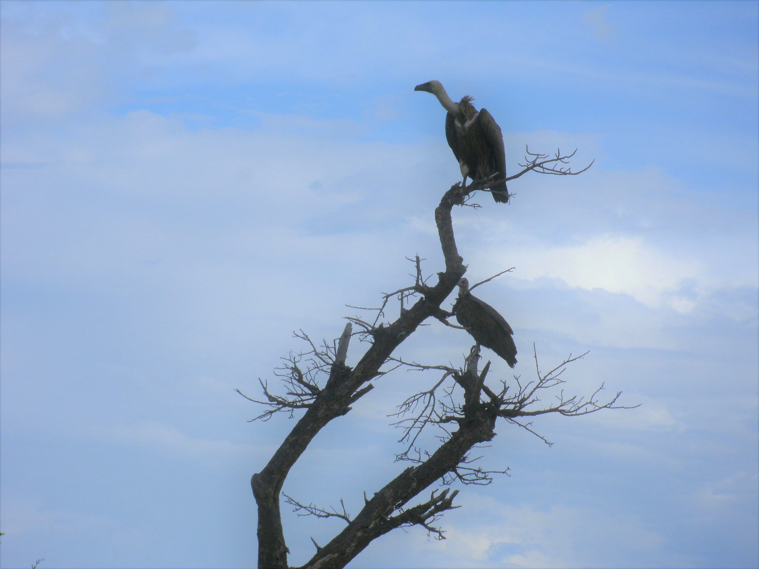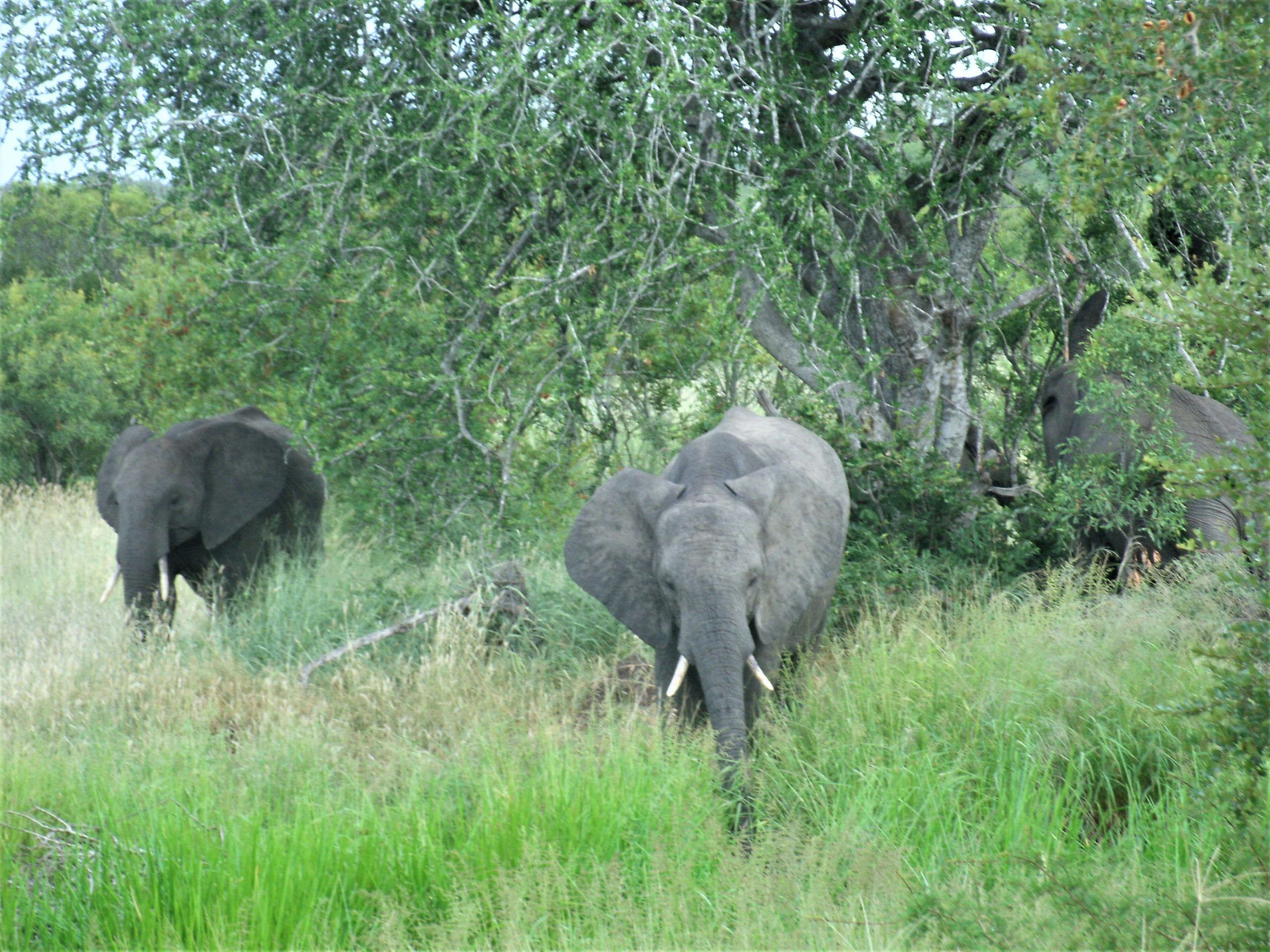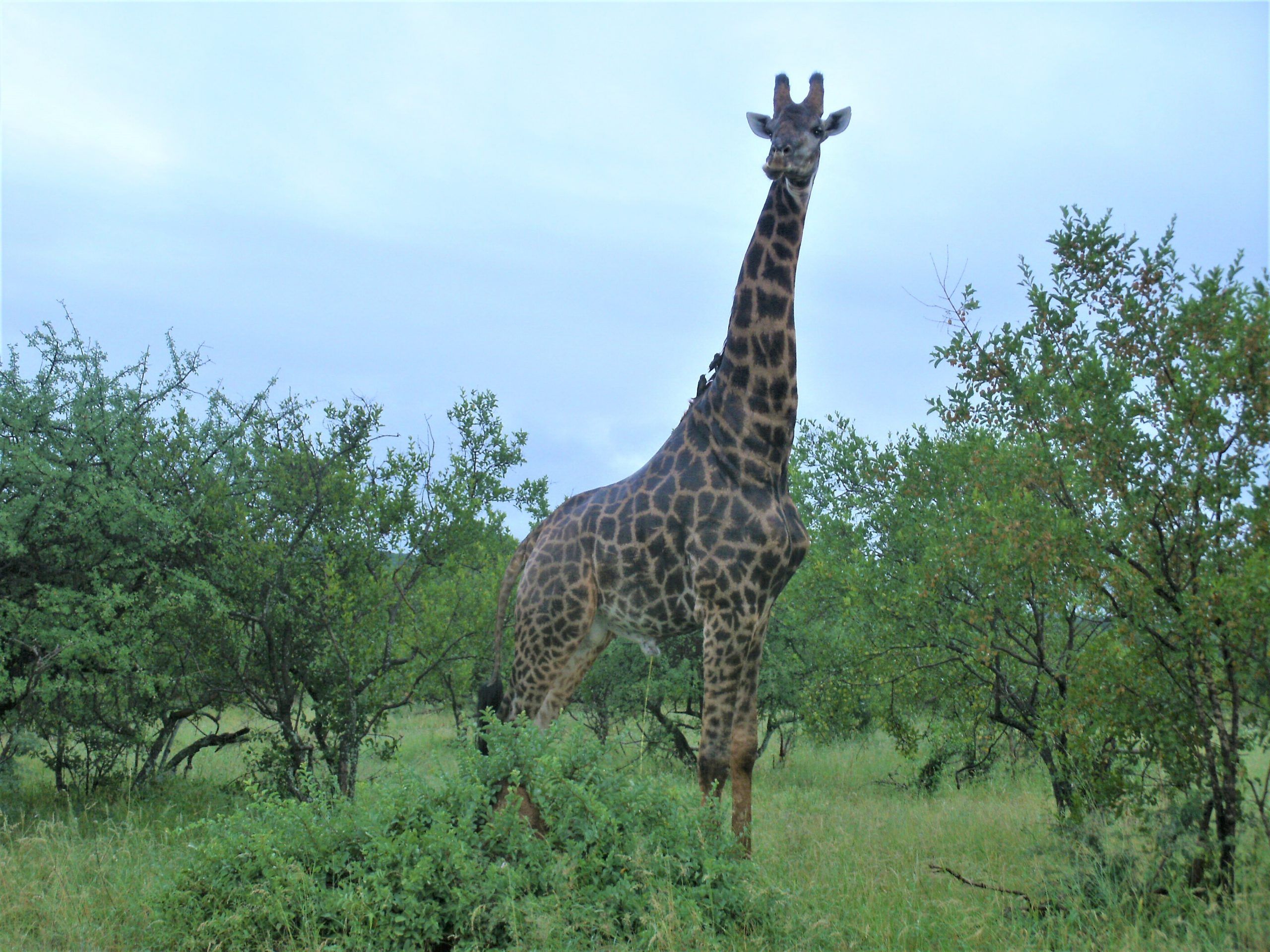It rained on our way back to the trucks and we all got thoroughly soaked. On the 4-hour afternoon game drive we saw a small pride of 3 large male lions. Bernard spotted the lions by vultures on the trees above. Saw two separate giraffes, 2 elephants eating their way down a hill, and some hippos in the river. We saw a fish eagle and a monitor lizard. We had a nice sundowner snack and drink at the top of a ridge. It was dark when we drove back and we saw the pack of dogs again through Bernard’s lights. Seeing the dogs twice in one day was very lucky. He’s only seen dogs about 10 times over the past year.
