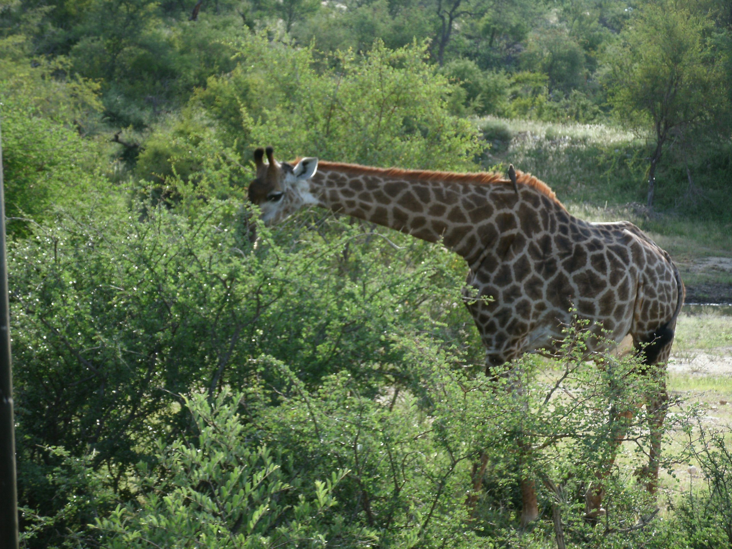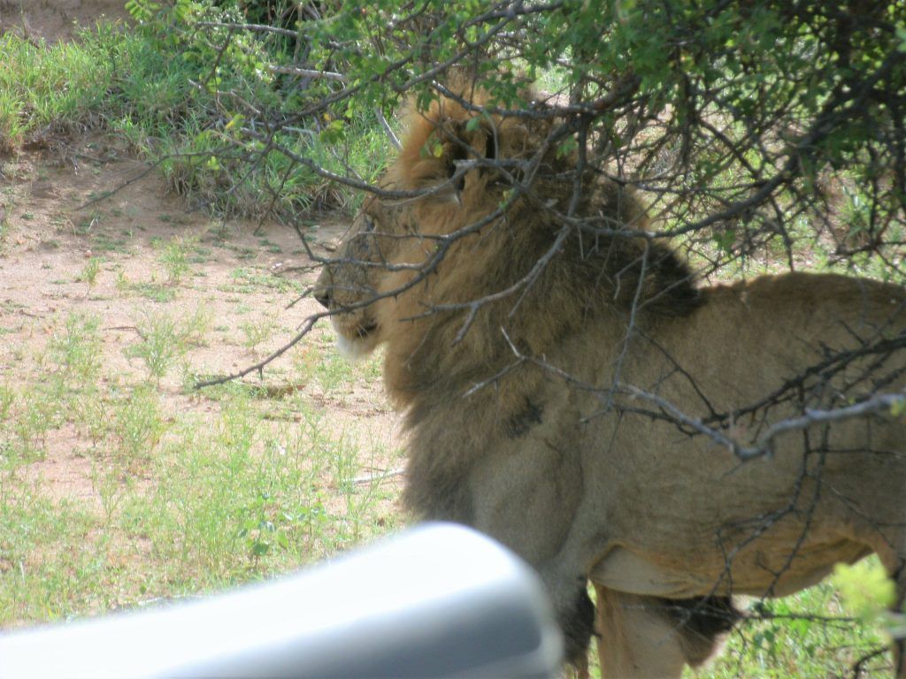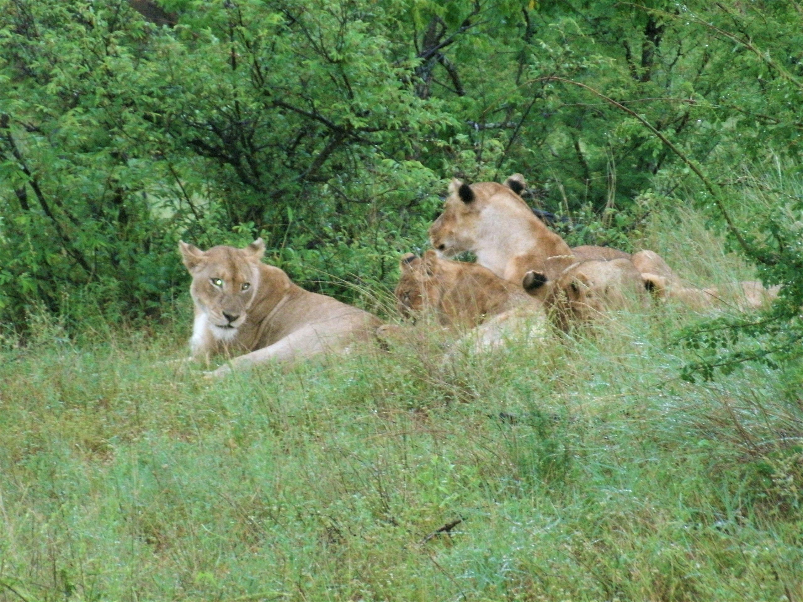 2/10 – The final day of the South Africa safari started at 5:45am for a one-hour game drive. It was just me and the guide. It rained hard all night, but the rain stopped just as the game drive started. We saw a giraffe by the road browsing and eating various small trees. Saw a pride of lions relaxing in the cool morning air. Had a long uneventful drive back to Joburg. Was not able to see Blythe Canyon because of the fog and rain. Shared the ride with a Brazilian couple on the first half. They both worked for Globo TV. She produced telenovas and he was a DP. They talked a lot about how bad the corruption was in Brazil.