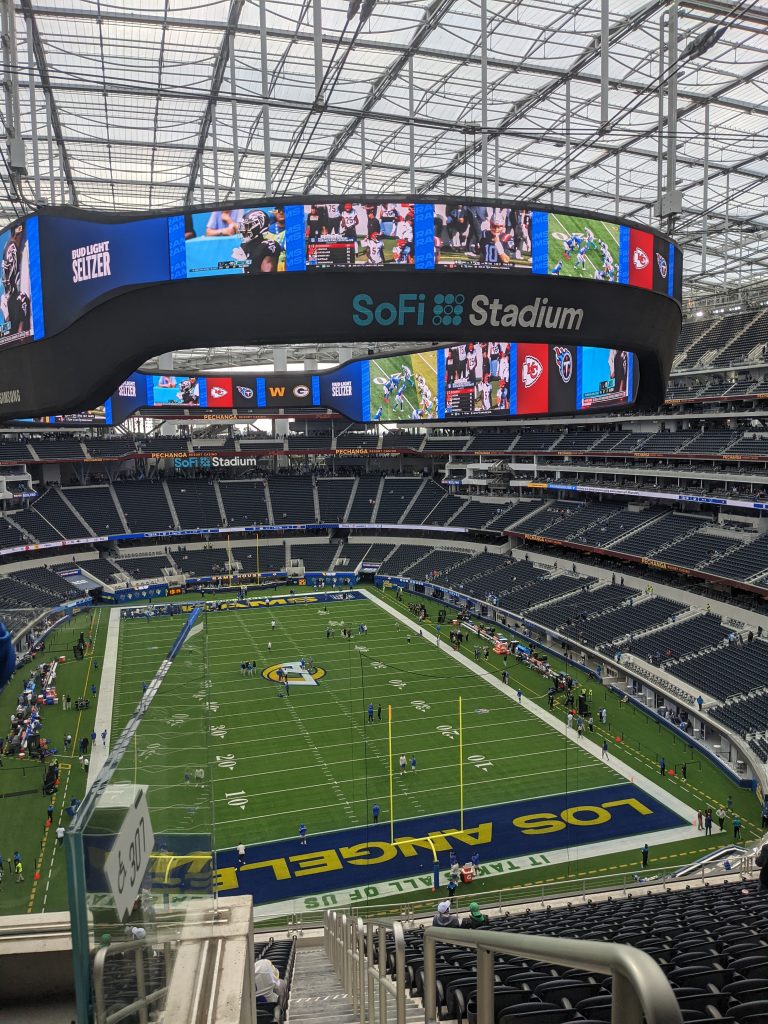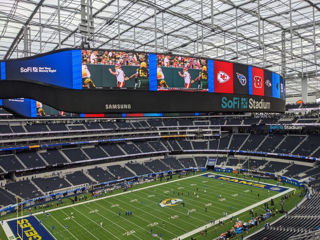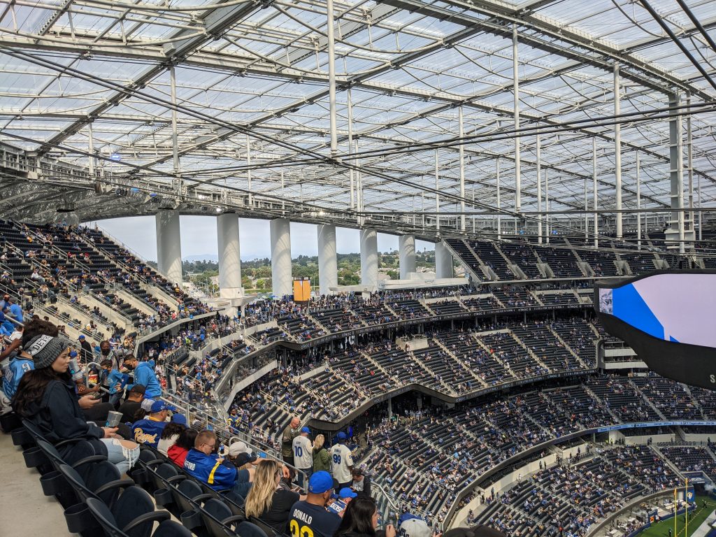 SoFi Stadium is the new $5 billion privately financed stadium complex in Inglewood that is the home of the Los Angeles Rams and the Los Angeles Chargers football clubs. As you can see from the pictures below, it is an incredible stadium.