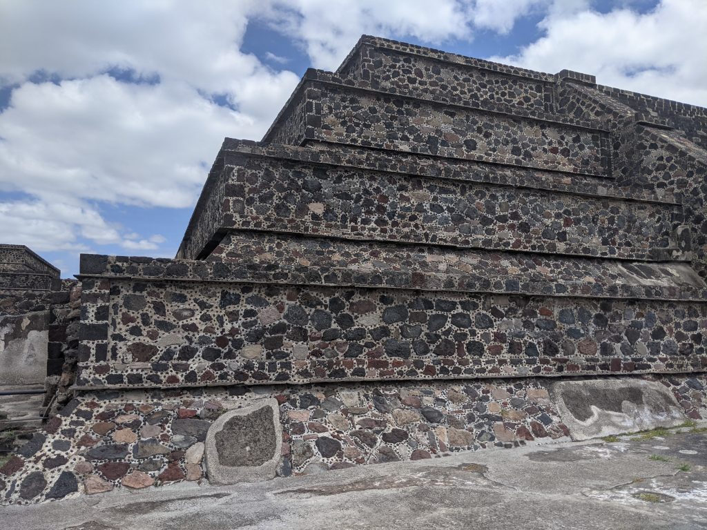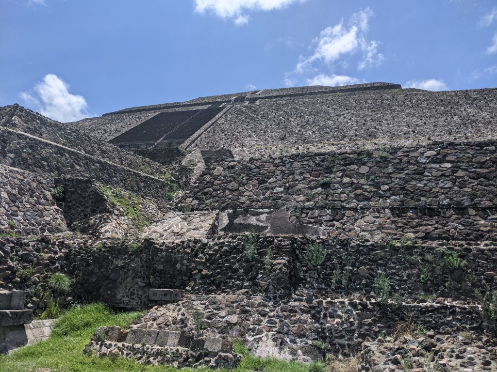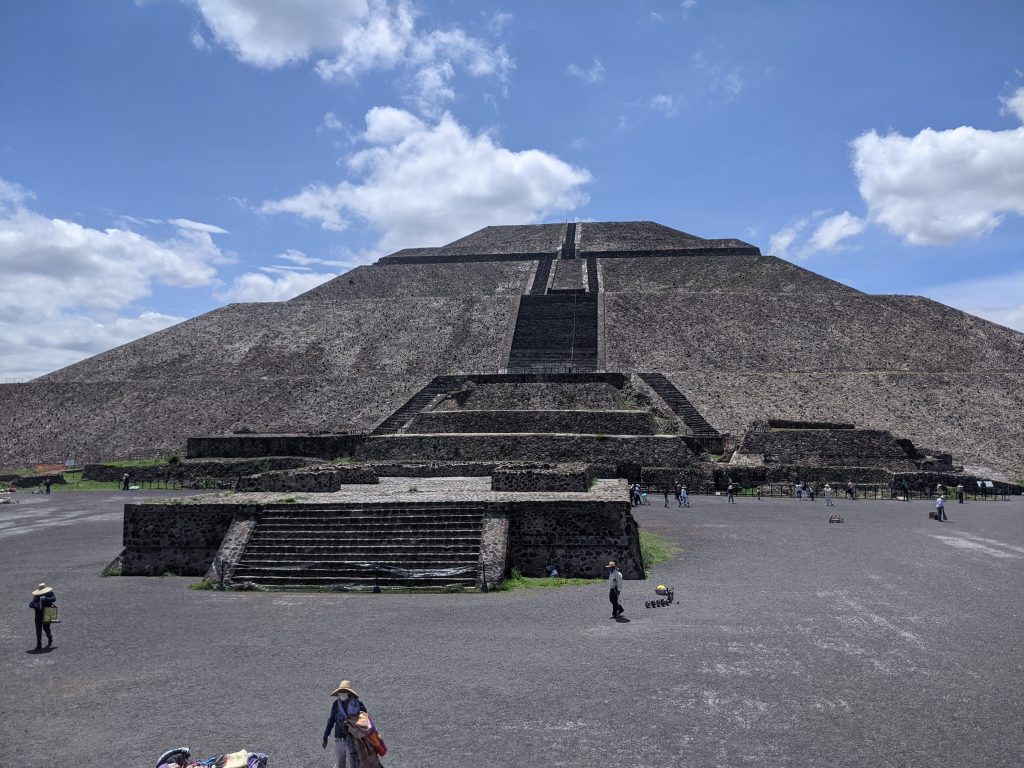 Teotihuacan is a massive series of ruins about 75km northeast of Mexico City. The civilization started around 600 BC and from about 200 BC until about 650 AD the city dominated the surrounding area. At its peak it’s estimated that over 150,000 people lived there and it covered over 23 square kilometers. Around 750 AD the city was sacked, burned and virtually abandoned. No one knows exactly why and there are no substantial traces of their language or culture.
