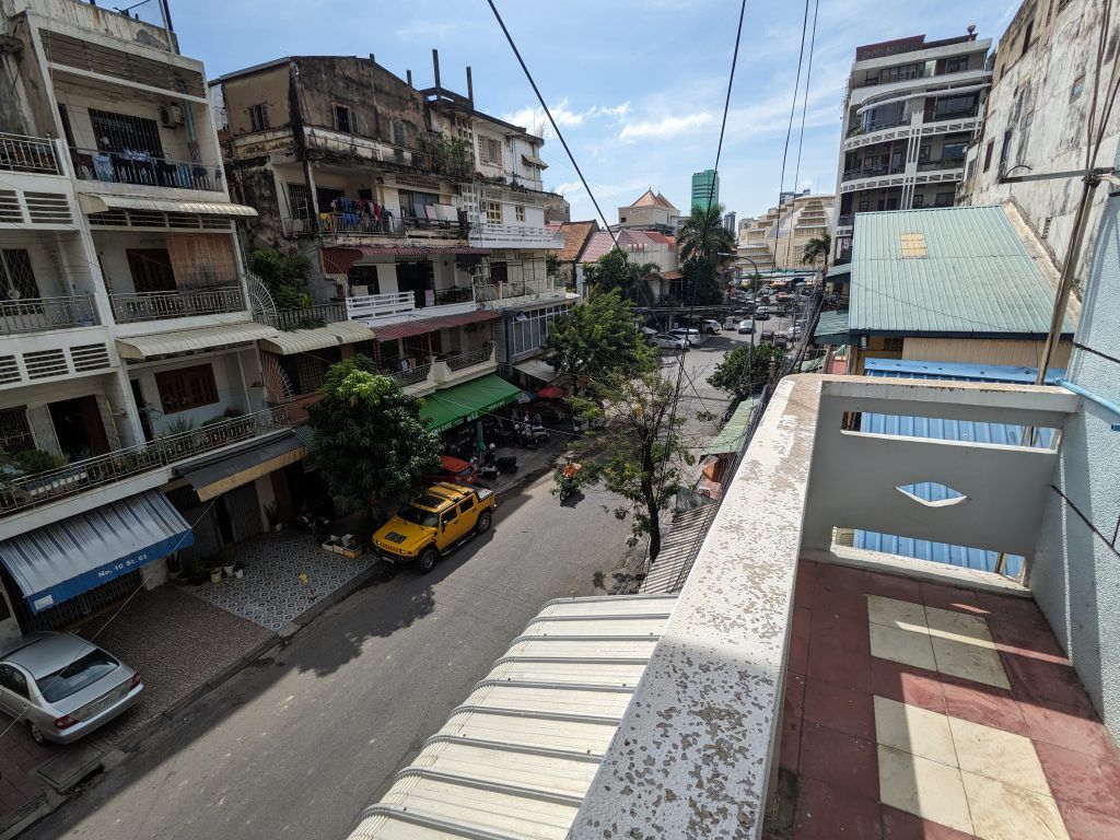 The view from my tiny balcony looking towards Phnom Penh’s Central Market.