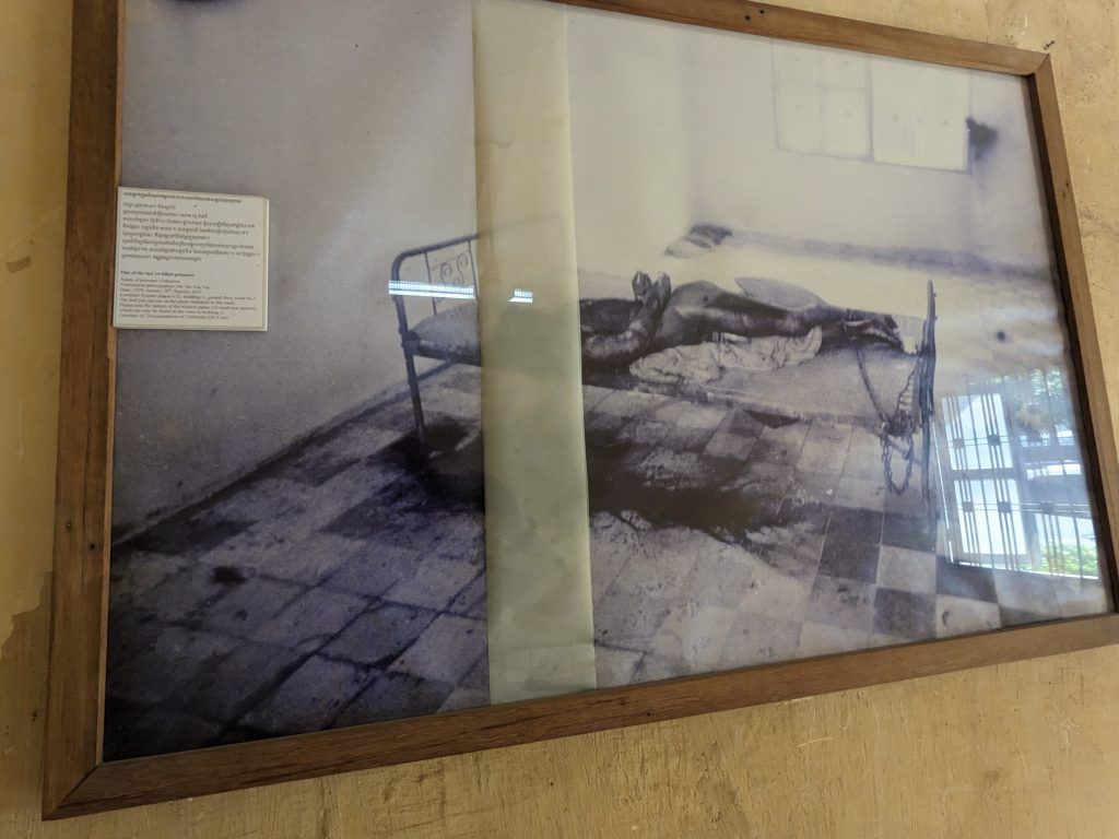 One of the torture rooms and a picture of one of the victims in that room found by the Vietnamese when they chased the Khmer Rouge out in 1978.