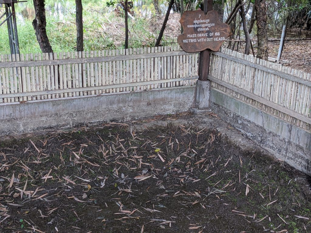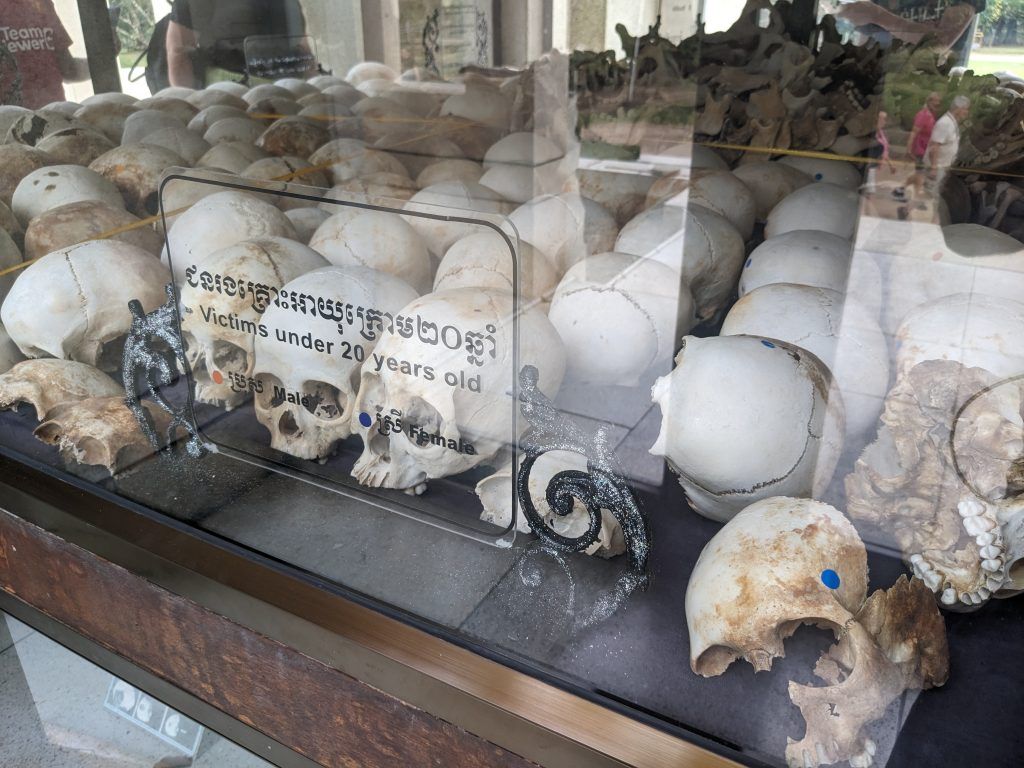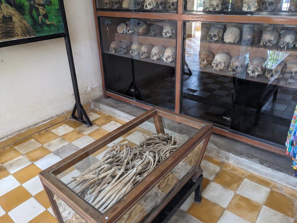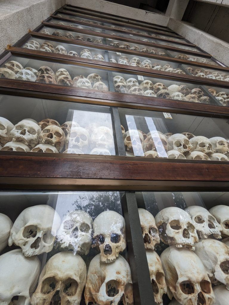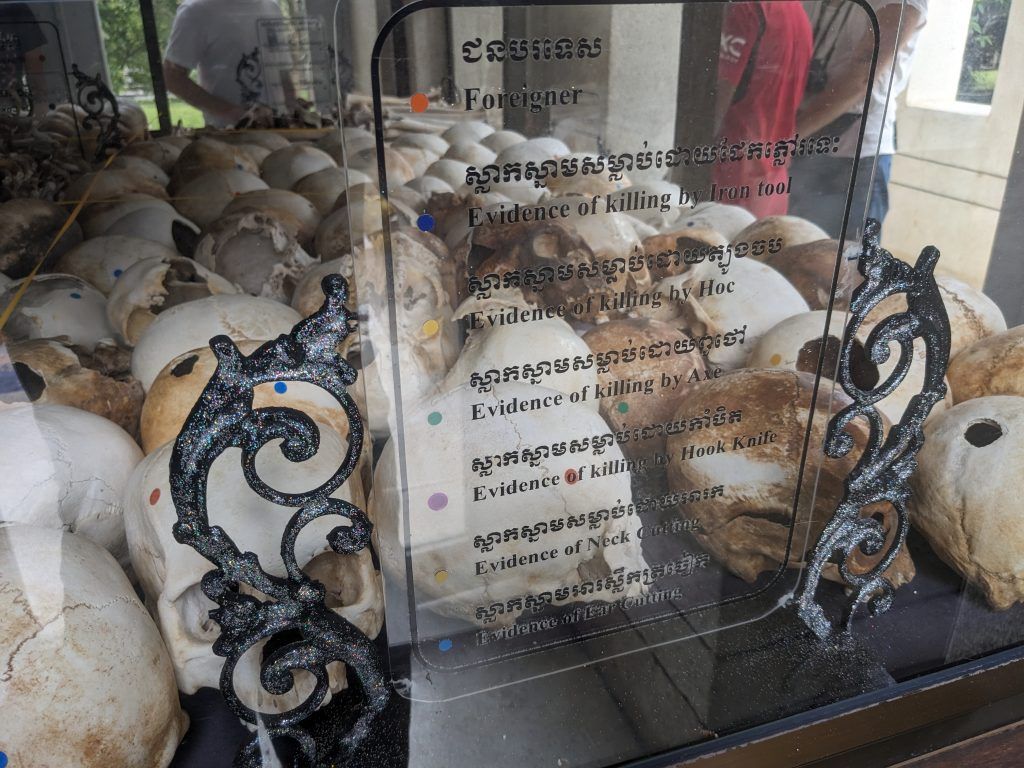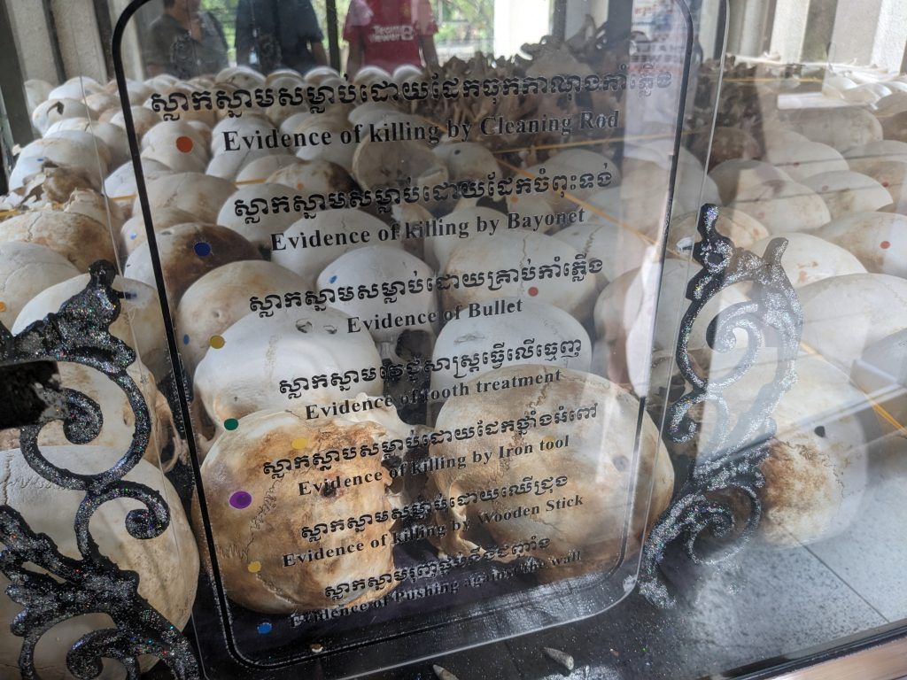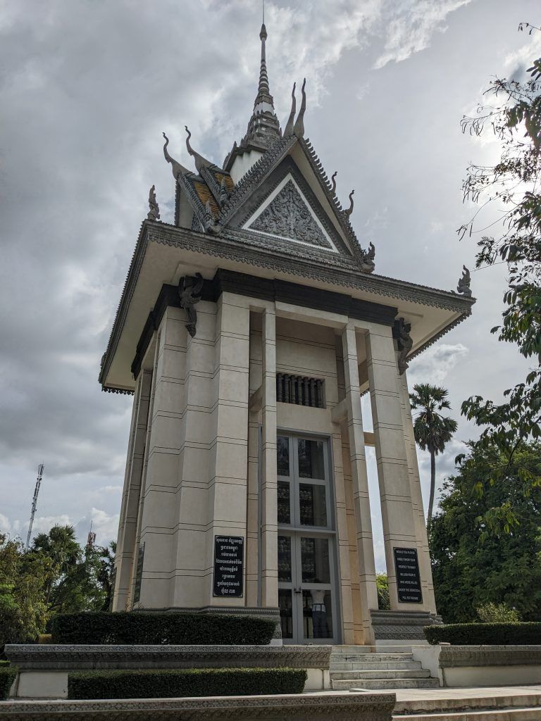A huge Buddhist stupa was erected as a memorial. It holds the skulls of over 5,000 victims. Each one is catalogued as to how they were killed.