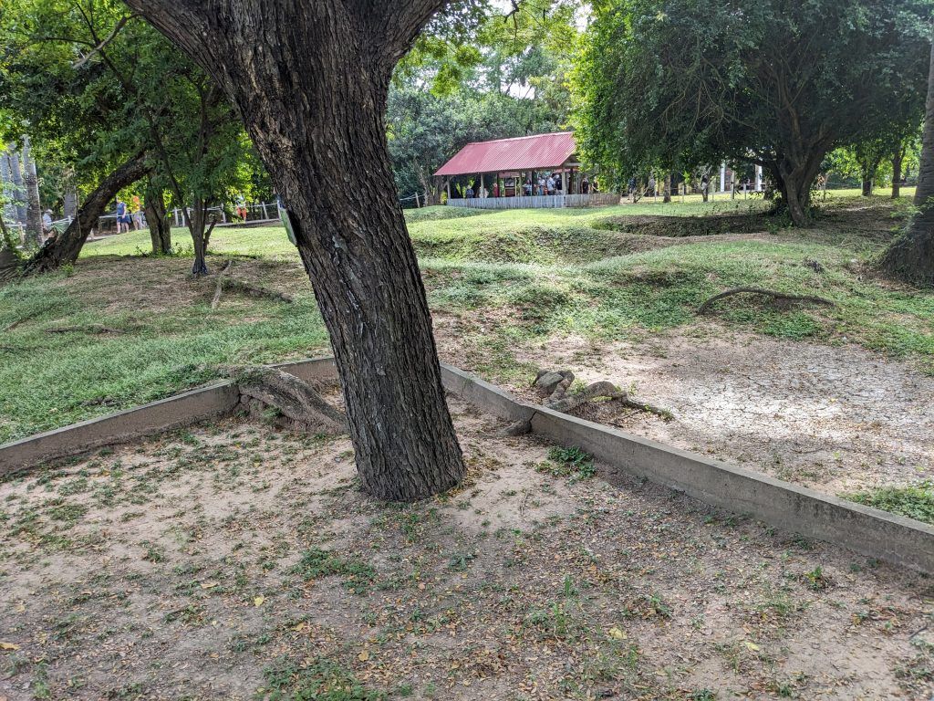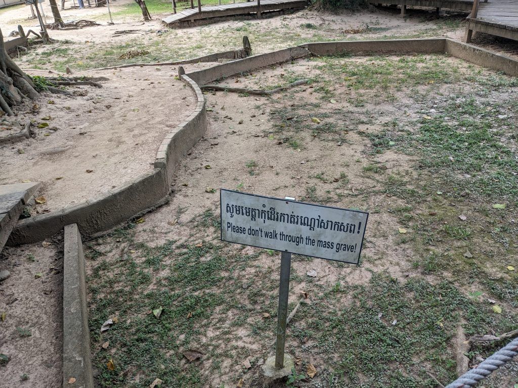 You can see the remains of the partially refilled mass graves all over the grounds.