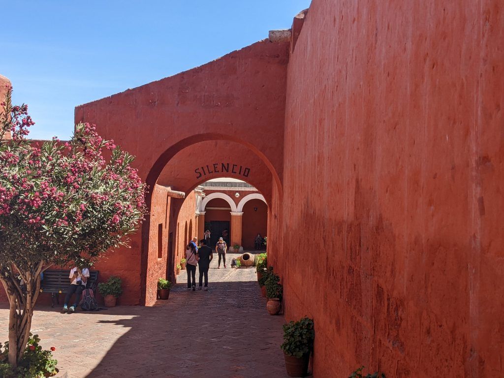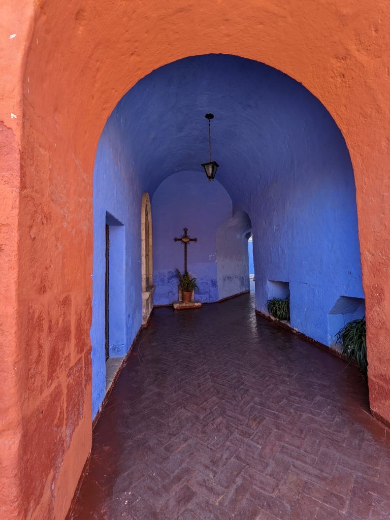 One of the most fascinating parts of Arequipa is the Convent of Santa Catalina de Siena. It was built in 1579 and is located in the historical center of the city. It served as a cloister for Dominican nuns from the sixteenth to the eighteenth centuries, and still houses a small religious community today. The complex, which stretches over 20,000 square meters, is built from volcanic sillar stone and is organized into cloisters, living quarters, a plaza, a gallery, and a chapel. At its height, the monastery housed approximately 450 people (about a third of them nuns and the rest servants) in a cloistered community. It was opened to the public in 1970 after almost 400 years of solitude. Walking through it is liking walking through a small city with actual street names on the sides of some of the walls.