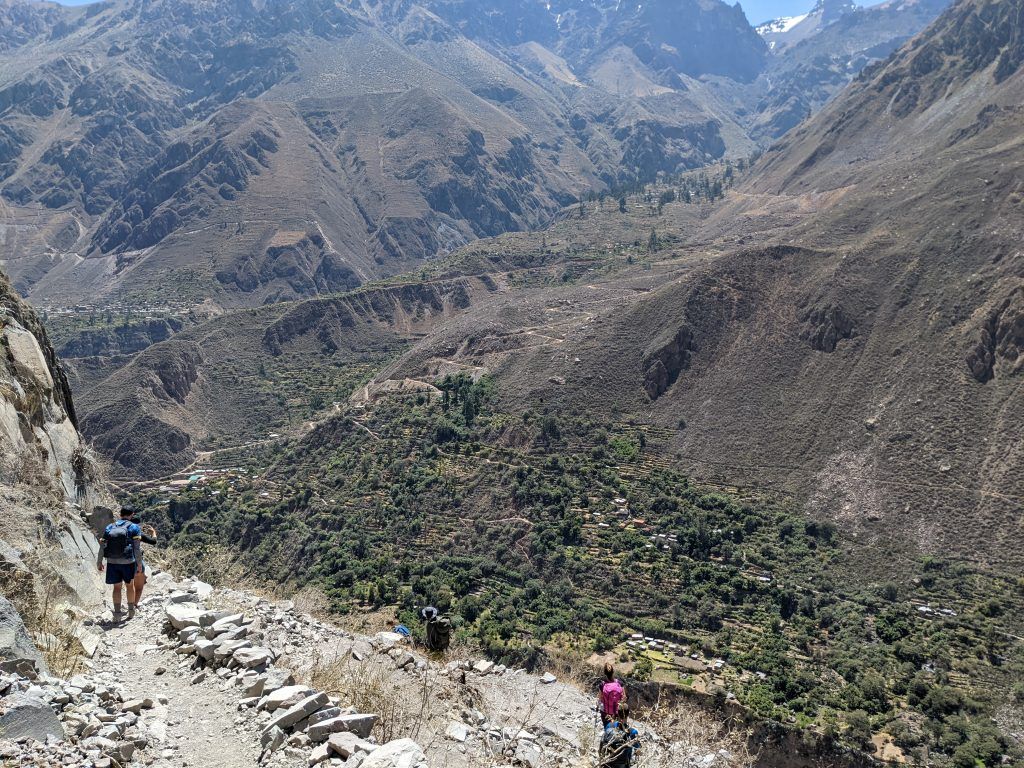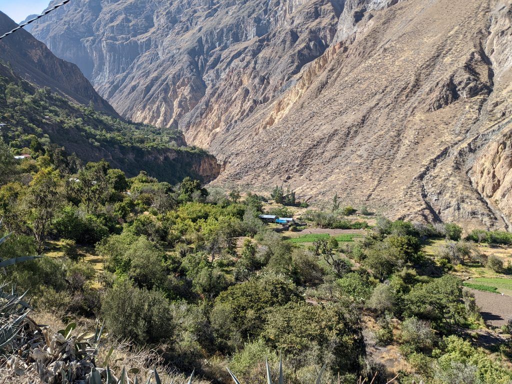 The first day I was picked up from my apartment at 3:30am and we drove 3 hours to the town of Chivay, where we had breakfast. From there we went to a condor lookout point and then headed to the base of the canyon trail to start our descent. It was incredibly steep, dropping over 1,000 meters (3,300) on a 4km trail. By the end my knees, quads and the front of my feet were incredibly sore. The further 2km walk to our hotel in the San Juan de Chuccho Valley was pretty painful, even if it was mostly flat. I was with a guide, two German college students from near Frankfurt, and two German and Swiss students from a university near Nuremberg. There were other groups all around us throughout the trip.