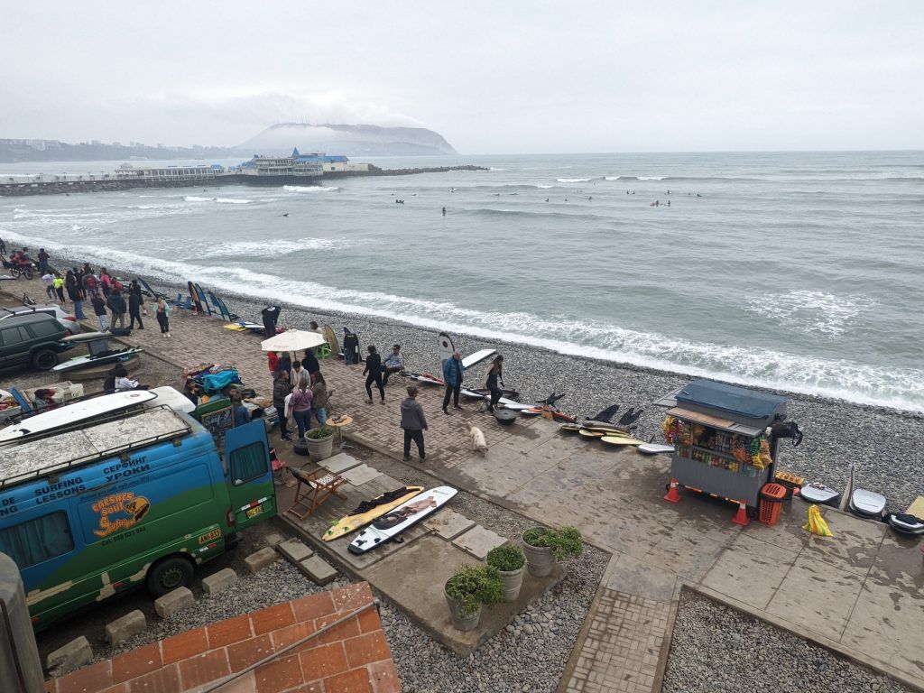 There’s definitely surfing in Miraflores, but it was really cold when I was there in the South American winter. There were no surf shops on the beach, just some schools pulled up with their vans renting out boards, wetsuits and giving lessons. There’s also really no beach in the area; just some small, smooth rocks and then the water.
