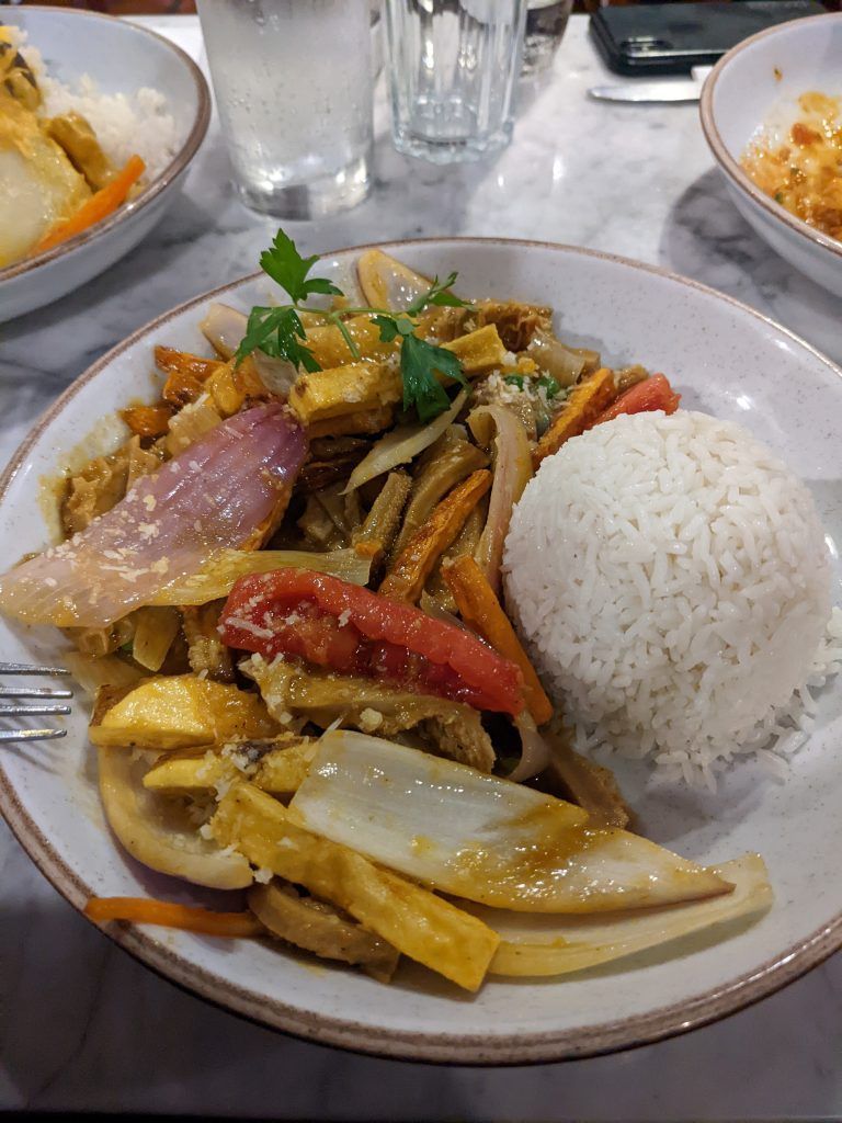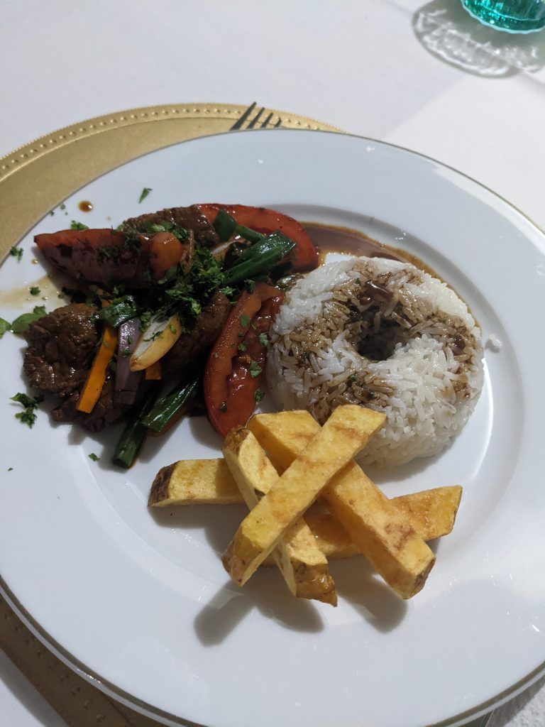 Our main course was at this cliffside restaurant where we had a chifa dish of lomo saltado, which is sauteed beef with rice and fries. Chifa is a type of famous Peruvian cuisine influenced by the many Chinese immigrants to Peru.