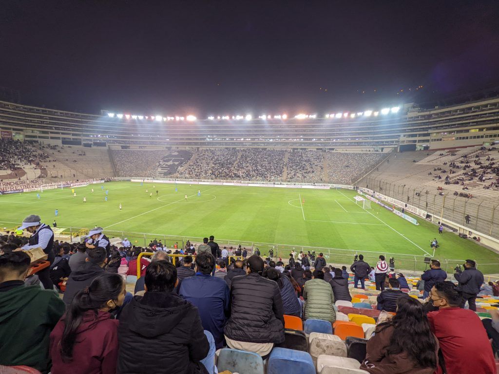 The next week we had a completely different experience. We went to the 80,000 seat Estadio Monumental to see the home team, Universitario, play Binacional. Estadio Monumental is actually the largest stadium in South America. There were only about 30,000 fans at the match we went to, but the core fan section behind the goal to our left was singing the whole match and provided a great, loud atmosphere. Especially since the home team won 2-0 in a typically chippy South American match with a lot of yellow cards and one red card against Universitario where they had to go down to 10 men.