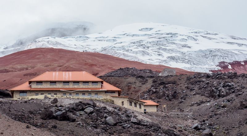 You can take a car up to a parking lot at 4,600 meters and then do about a 45 minute hike to the Jose Rivas Refuge, a stone structure at 4,800 meters (almost 16,00 feet). The hut has a small cafeteria and beds that act as a base camp for climbers that want to ascend to the 19,000 foot peak. I simply did the shorter, but still exhausting (from the altitude) hike from the parking lot. It was a really nice experience. The clouds and fog covered the glaciers for most of the time, but we still got a few good glimpses.