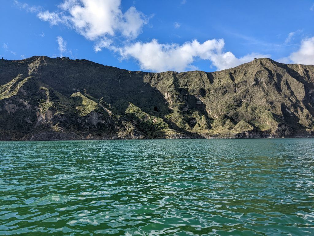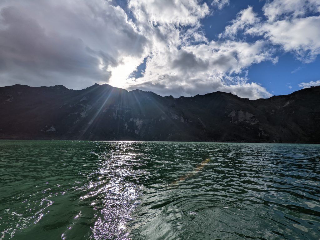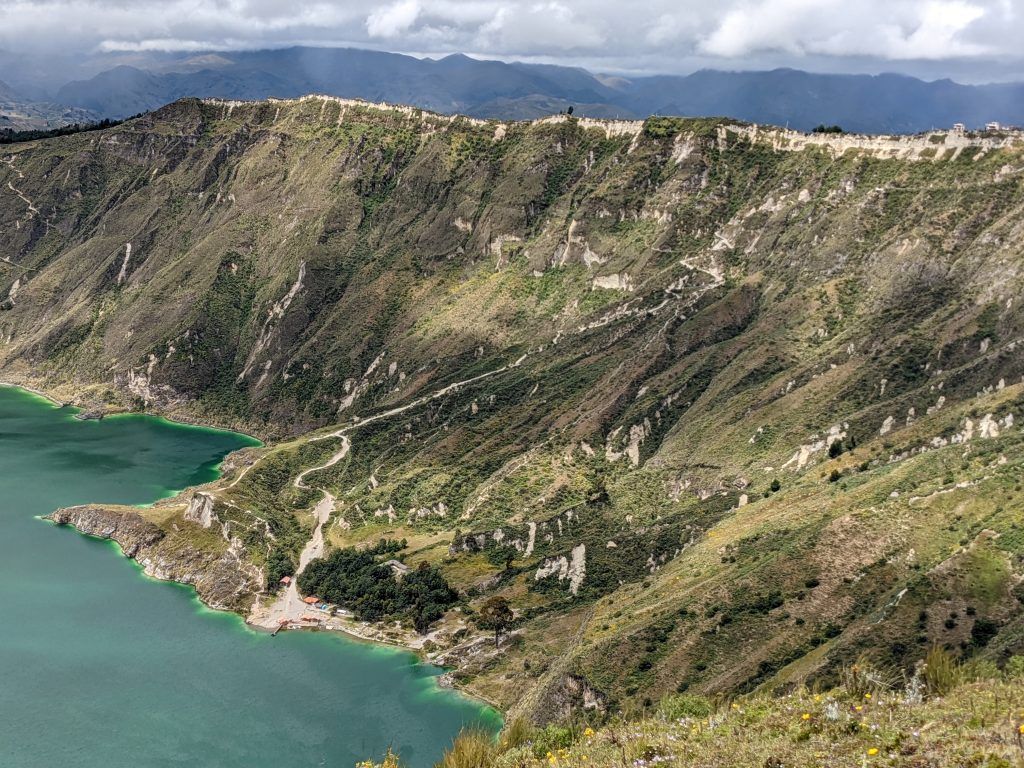 Quilotoa Lake is one of the most beautiful lakes I’ve experienced. It’s over 3km wide and sits inside the Quilotoa volcano. The lake was created by a massive eruption by the volcano around 800 years ago. The mudflows from the volcano were so massive they reached the Pacific Ocean. The highest point of the volcano rim is at 3,810 meters (12,500 feet) and the lake is at 3,500 meters.
