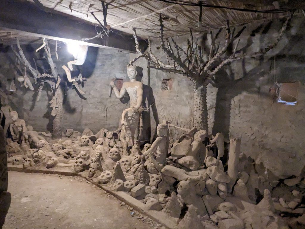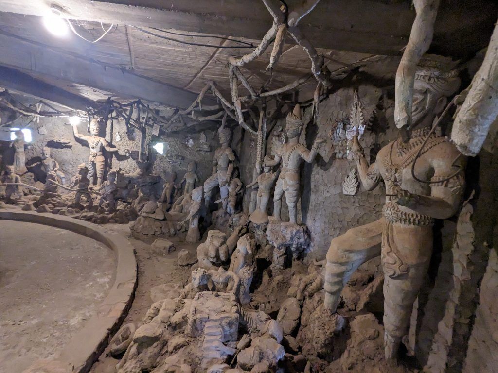 The first thing that catches your eye is this three story building that resembles a giant pumpkin. The three stories supposedly each represent three levels: hell, earth and heaven. You enter through its mouth and climb staircases from hell to heaven. Each story contains sculptures depicting that level. At the top there’s a vantage point where the entire park is visible.