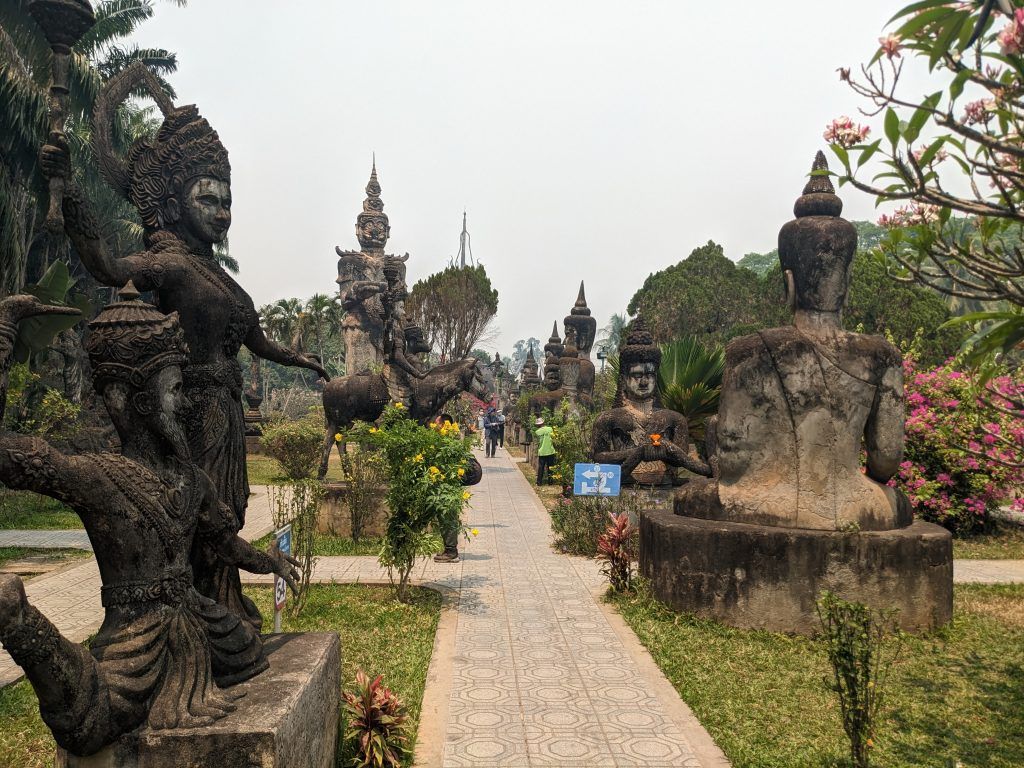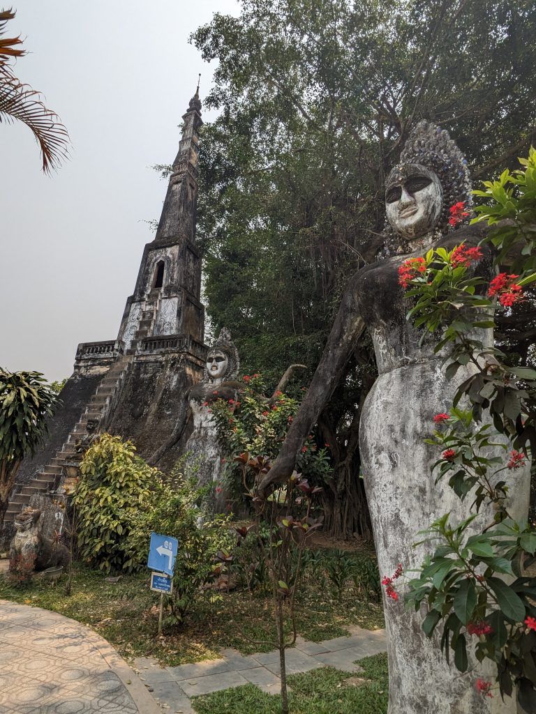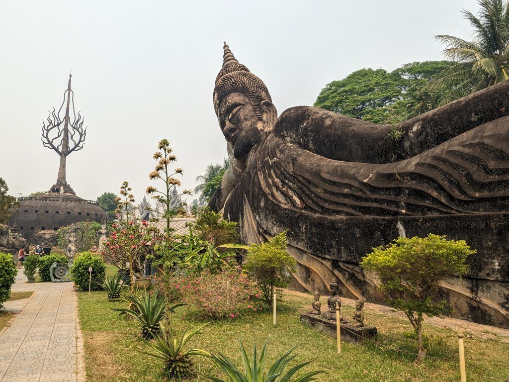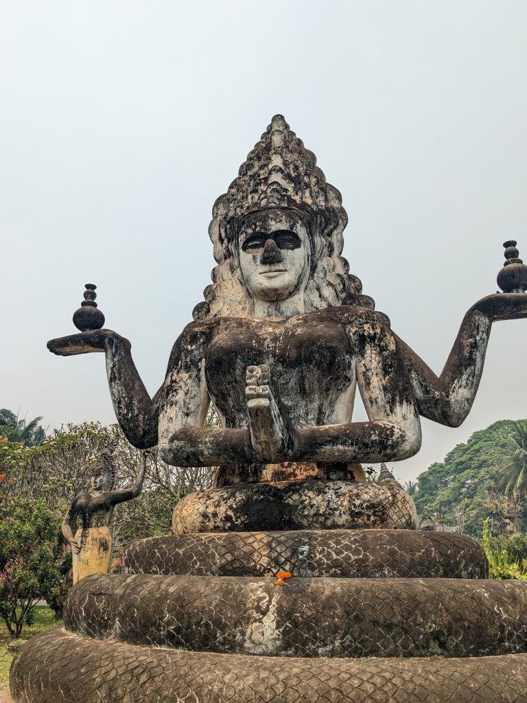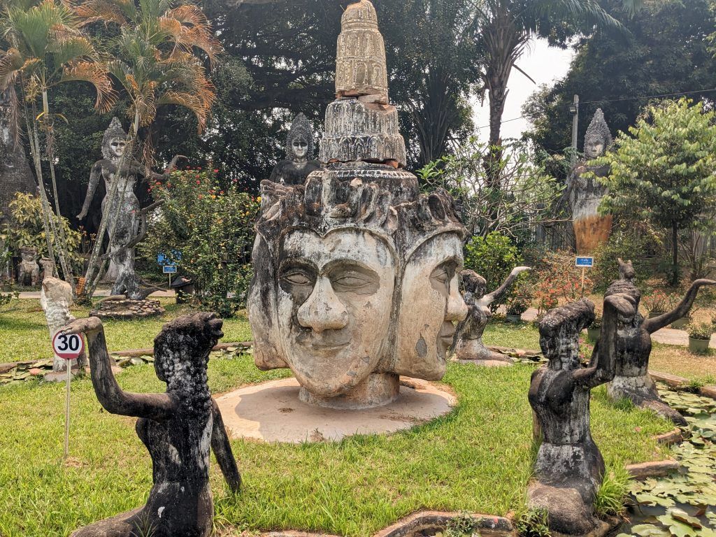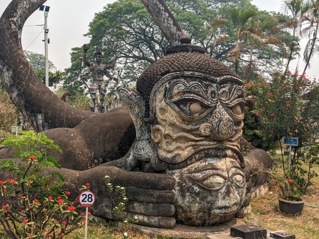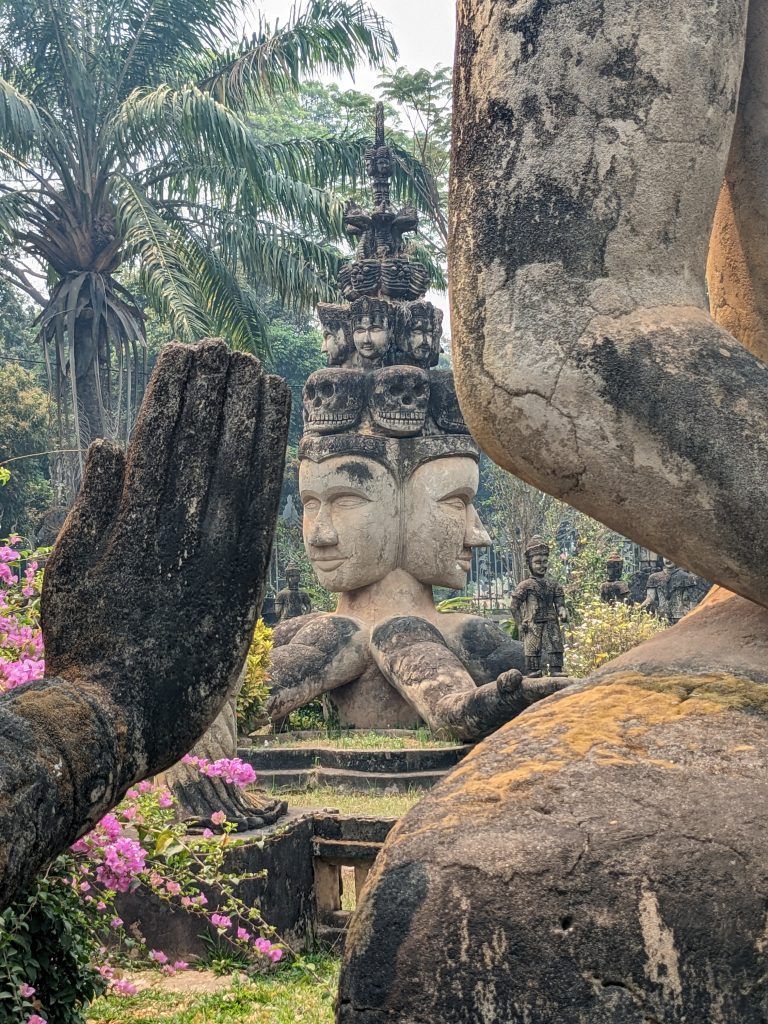 I’m actually saving the best for last in this post. I rented a scooter and drove the 25km south to Buddha Park, which sits along the Mekong River near the border with Thailand. It was built starting in 1958 and has an amazing collection of crazy Buddha and Hindu sculptures and monuments.