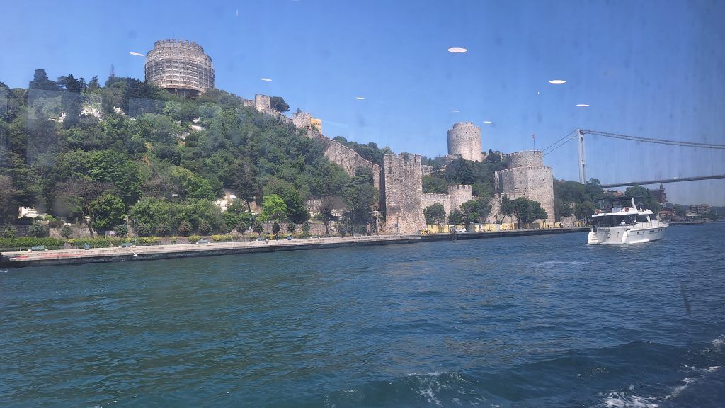 The Fatih Sultan Mehmet Bridge was completed in 1988 and was the 5th longest suspension bridge in the world. Just before the bridge is the Rumeli Fortress that was conceived and built between 1451 and 1452 on the orders of Sultan Mehmed II. It was commissioned in preparation for a planned Ottoman siege on the then-Byzantine city of Constantinople, with the goal of cutting off maritime military and logistical relief that could potentially come to the Byzantines’ aid by way of the Bosphorus Strait