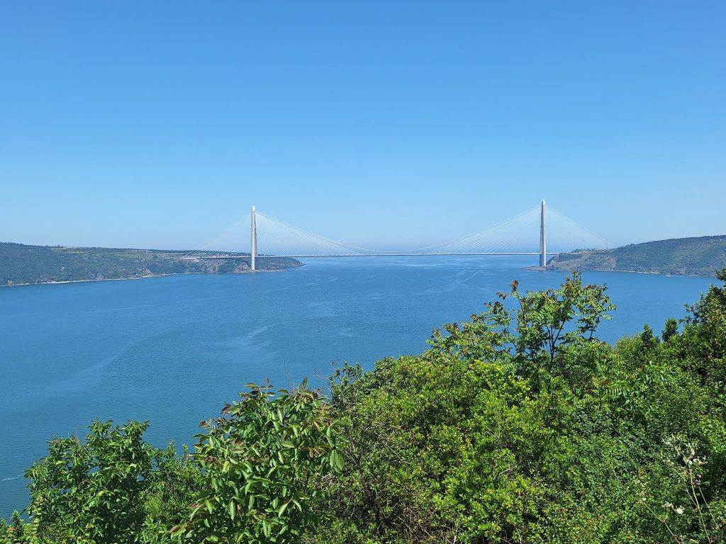 Behind the bridge is the Black Sea. The Asian side is on the right and the European side is on the left.