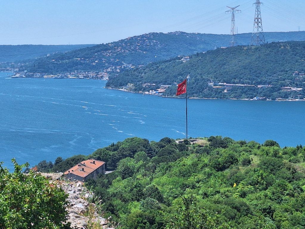 “Yoros Castle was intermittently occupied throughout the course of the Byzantine Empire. Under the Palaiologos dynasty in its later years, Yoros Castle was strongly fortified, as was the castle on the opposite side of the Bosphorus. A massive chain could be extended between these two points, cutting the Strait off from enemy warships in the same way that the chain across the Golden Horn was used to defend Constantinople during the last Ottoman siege by Sultan Mehmed II.