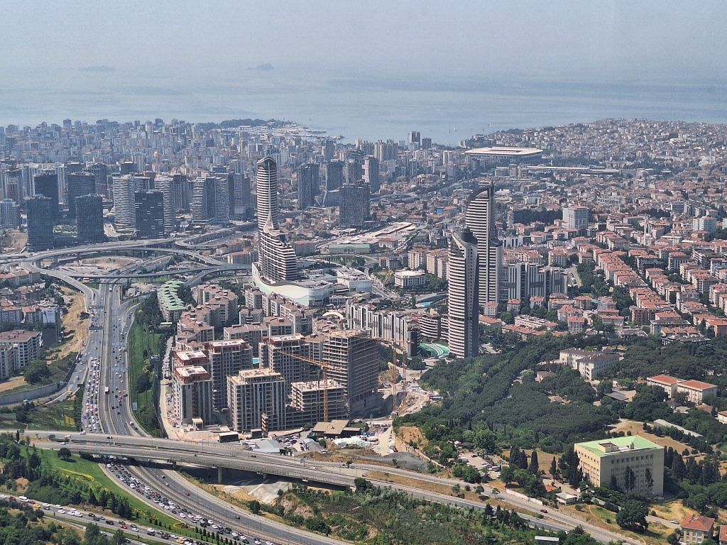 The view across the first Bosphorus bridge to one of Istanbul’s main business districts.