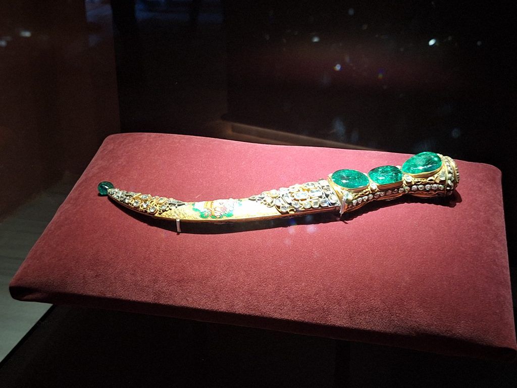 …and the famous Topkapi Dagger. Its hilt is studded by huge emeralds and surrounded by diamonds and gold.