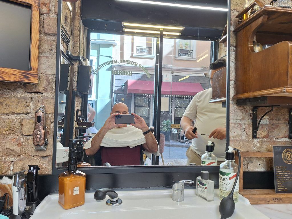 I went to a local Turkish barber and got my face and head shaved. One other component to his process was putting hot wax over my ears and on my nose. Once the wax cooled and dried, he pulled it off to remove any loose hairs. I understood why he did it on my ears, but couldn’t figure out why this was done on my nose. I’ve read they sometimes used burning stick to clear out your nose hairs, but thankfully he only used an electric clipper for that. It was a great experience, but it wasn’t cheap, so it was something I’m happy I did once.