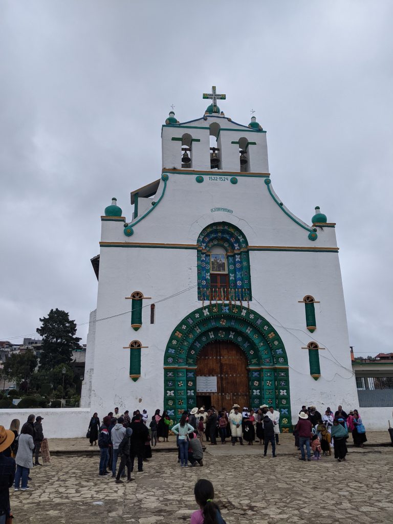 Today I saw a live chicken being killed and sacrificed in a 16th century Catholic church in the small town of San Juan Chamalu. One old man chanted in Tzotzil while holding the live chicken. He’d touch different parts of a frail older woman’s body with the chicken, hold it over a sea of lighted candles on the floor, and then perform the same progression with the women again. This went on a few times as he continued to chant. After throwing some pox (“posh”, the local liquor) over the candles he handed the chicken over to a younger man. Apparently, this was the younger man’s first time at killing a chicken. A colleague standing next to him made a wringing motion with his hands. The chicken holder tried to twist the chicken’s neck. Its wings flapped hard. He twisted it the other way. The chicken’s wings flapped hard again. Finally, he twisted as he brought his knee up to the chicken’s neck. That did the trick. What was even more fascinating was that this wasn’t performed by someone in robes in front of hundreds of people. It was just a small gathering of 6 people in one section of the church.