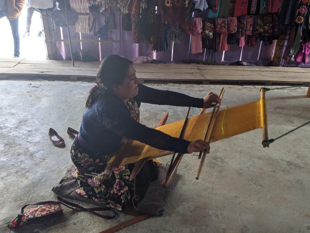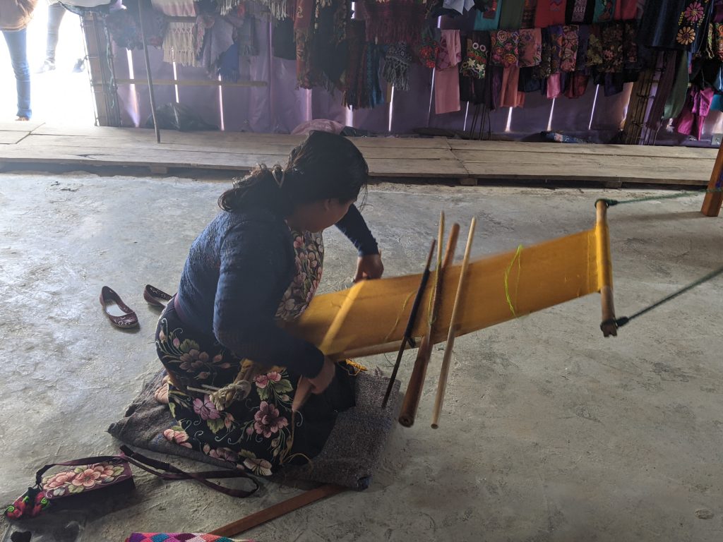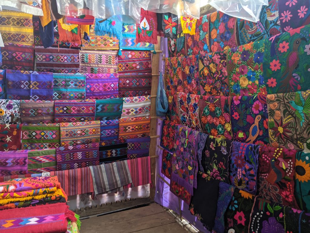 As for weaving, it’s known for its incredibly beautiful floral patterns influenced by the local industry. You can find blouses, shawls, table runners, pillowcases, and plenty of smaller souvenirs like coin purses and bracelets featuring the work. Zinacantan is also famous for its traditional huipil blouse or dress, which is made by backstrap loom weaving. It’s common to see women wearing a huipil for daily use in Zinacantan and throughout southern Mexico and Central America.