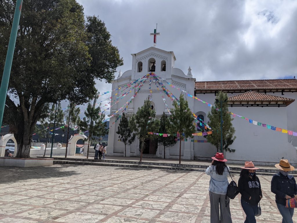 We also visited the Tzotzil village of Zincantan. Its main church, San Sebastian, also has Tzotzil Catholic masses, but is much more traditional than its neighboring church at Chamula. The church has formal pews and no unique ceremonies going on. However, it also has scores of colorful flowers throughout, which make for an incredibly beautiful experience. Unfortunately, we were not able to photographic the inside this church either.