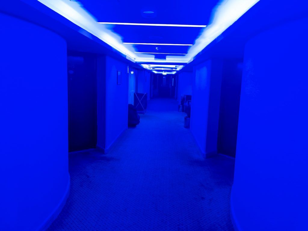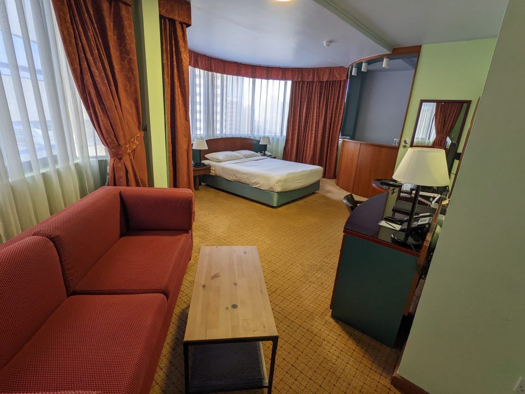 I had a hotel room downtown. The building was pretty dated, but the room was large and very comfortable. The strangest part was the wanna-be-hip-but-actually-depressing blue lighted hallways.