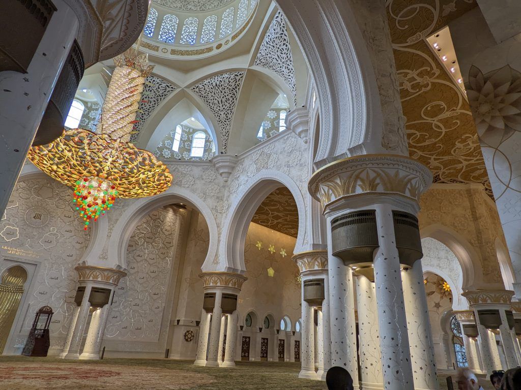 The Sheikh Zayed Grand Mosque is the largest mosque in the UAE. It took over 20 years to complete and can house up to 40,000 worshippers at once. It has extensive high grade marble, possibly the largest carpet in the world, and a number of chandeliers that incorporate millions of Swarovski crystals. It’s really a wonderful place to visit.