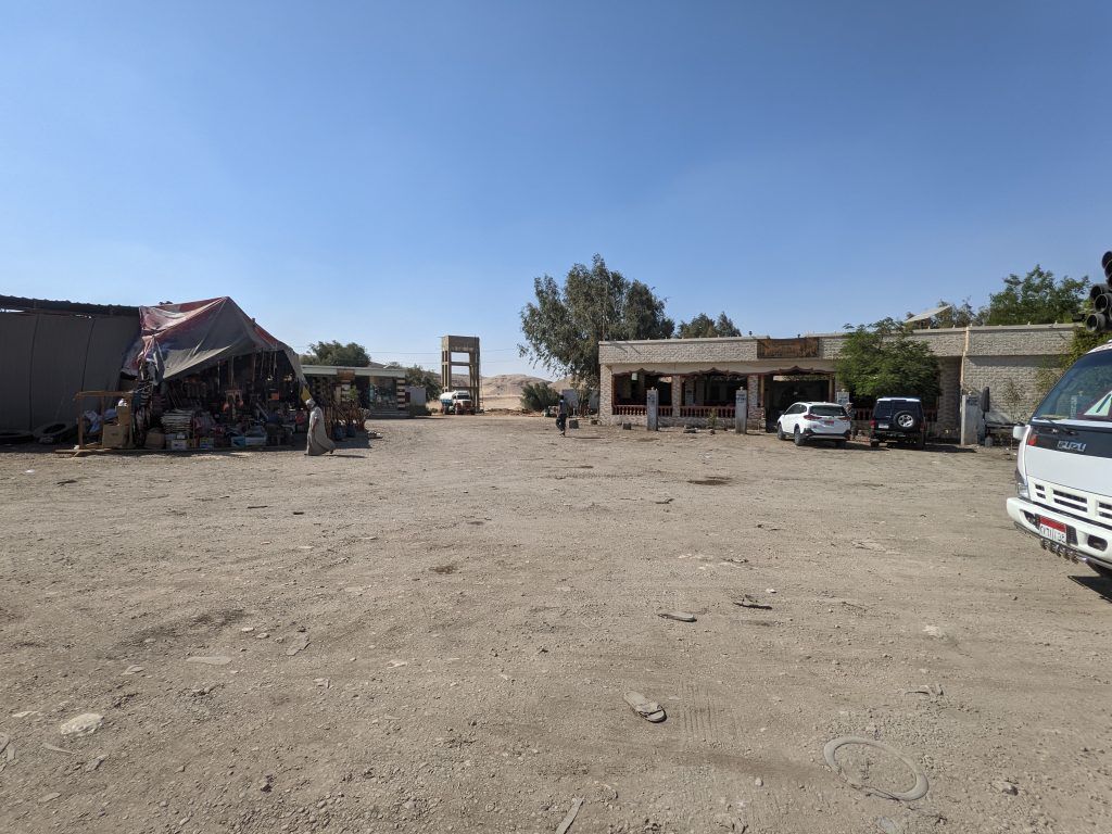 Because of some trouble they’ve had over the years in this area, we had a police escort for most of the trip. One of the many small oasis’ that can be seen from the road. The empty, gaudy pink hotel I stayed in for one night in the Kharga Oasis area. A truck stop we went to for some snacks. Our car is the white car next to the police jeep that was our second day escort.
