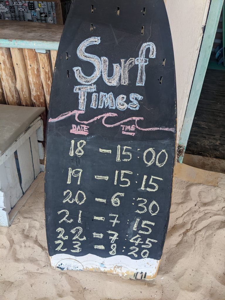 There’s a beginner area right near the reef on the inside where you get nice small waist high sets or a more intermediate area more outside where you can get shoulder and head high sets. I started the first day at the beginner area and then went out the second day to the outside area. It was a lot of fun. The waves were fast and fun. Unfortunately, it involved continuous paddling to get set up against the current. By the end of the session my unforgiving right shoulder started to feel it. So I spent the next few sessions inside before going back outside my last two sessions.