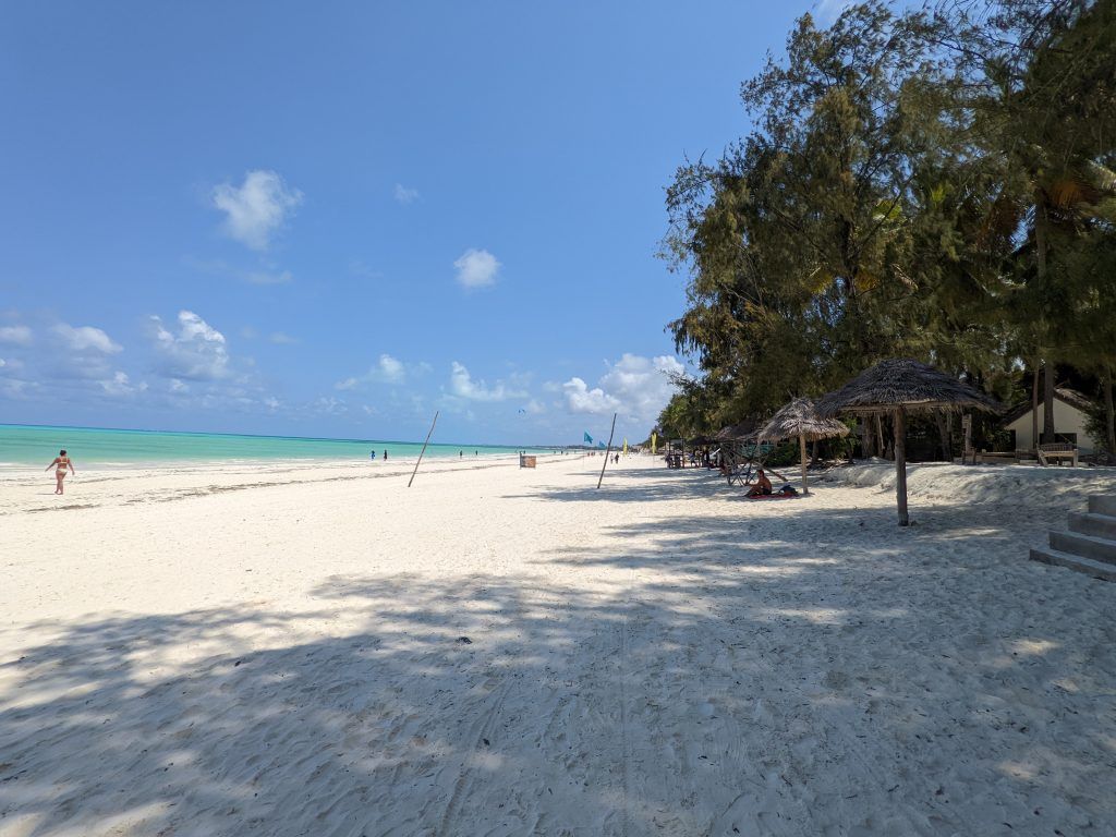 Paje is a beautiful small village in the southeast of Zanzibar that has grown into a European beach playground known for excellent kitesurfing. As you can see below it also has a long, beautiful beach with a number of places to spend the day lounging around.