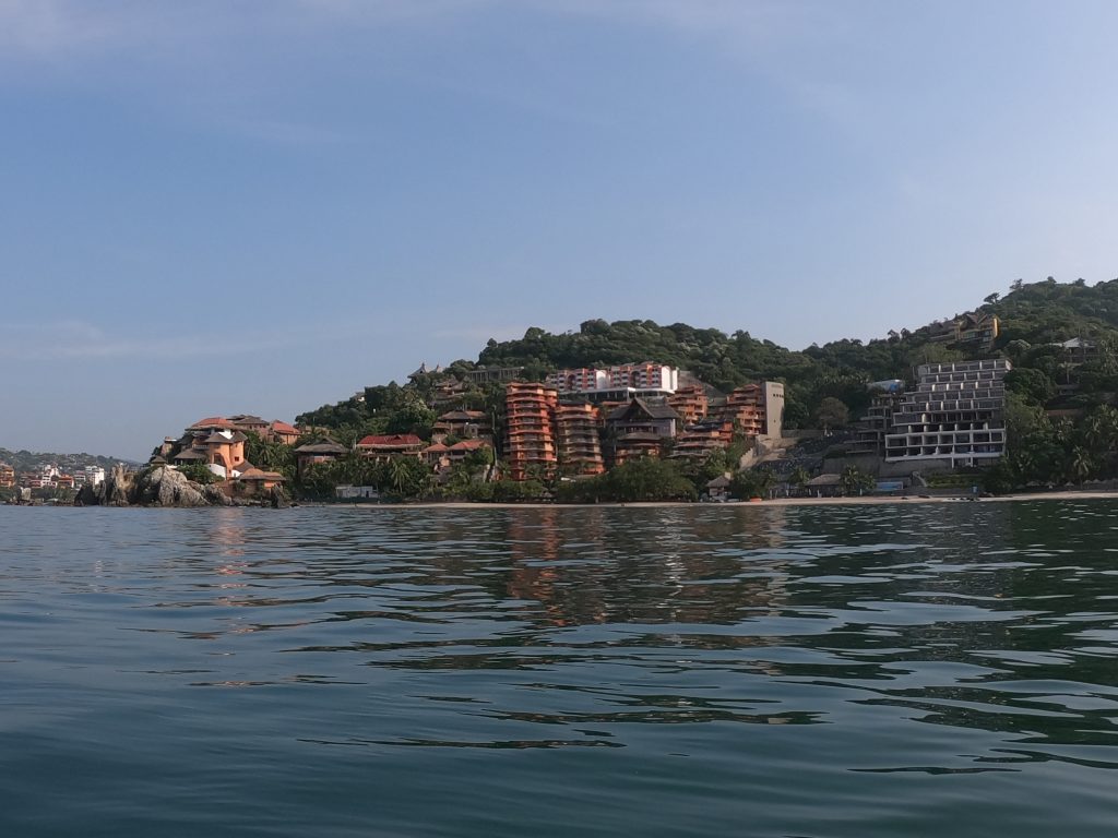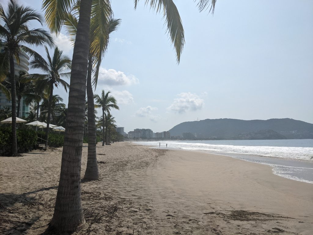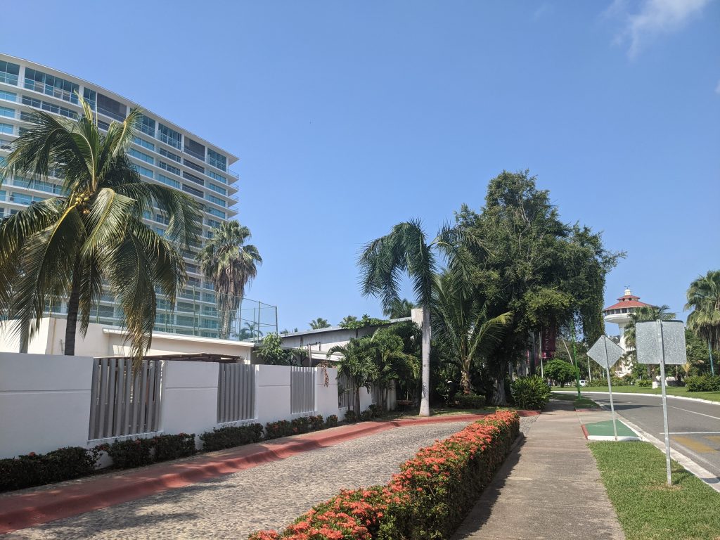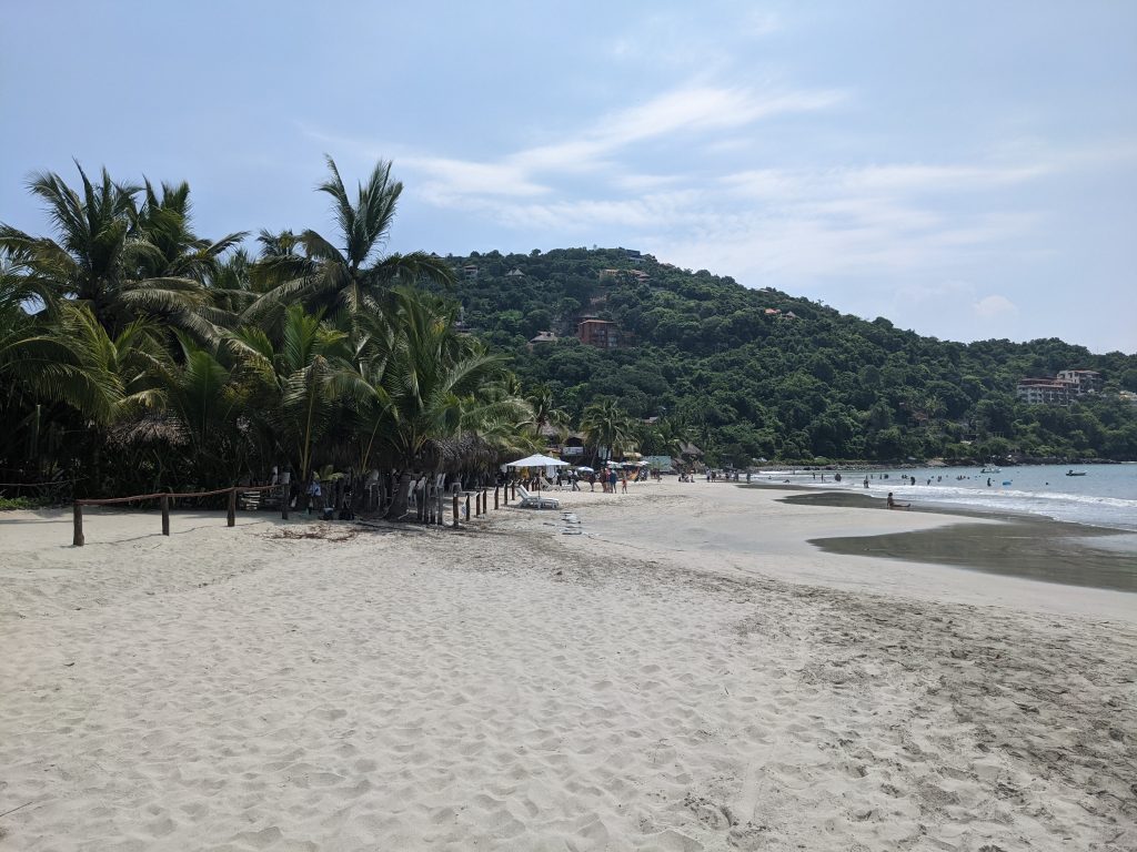 Just north of Zihuatanejo is the resort town of Ixtapa. While, Zihua is a traditional fishing town with tourism overlaid on it, Ixtapa is a planned resort area created from scratch by the Mexican government in the 1970s. While the beach is public property, Ixtapa has a ton of private condos and hotels that, except for a few gaps, block off access to most of the beach. So people can enjoy the whole beach, but have limited places to get to it.