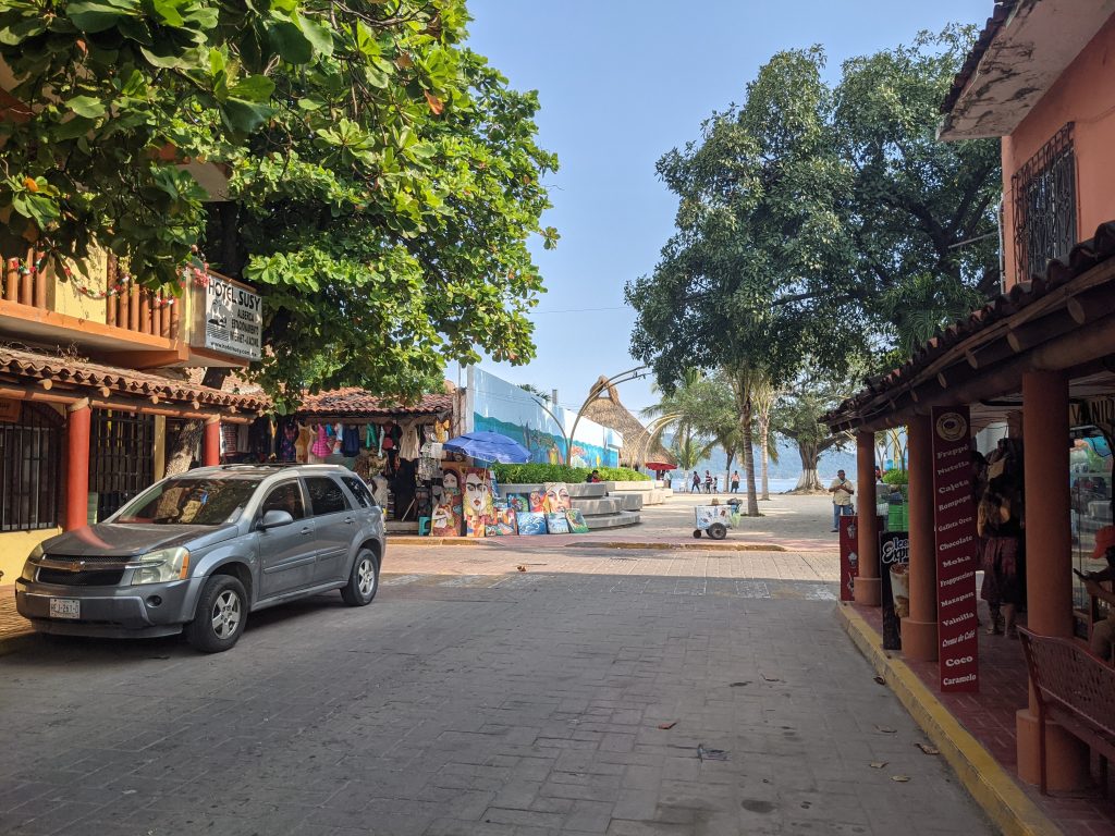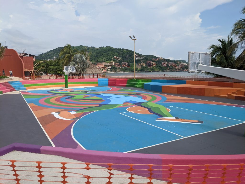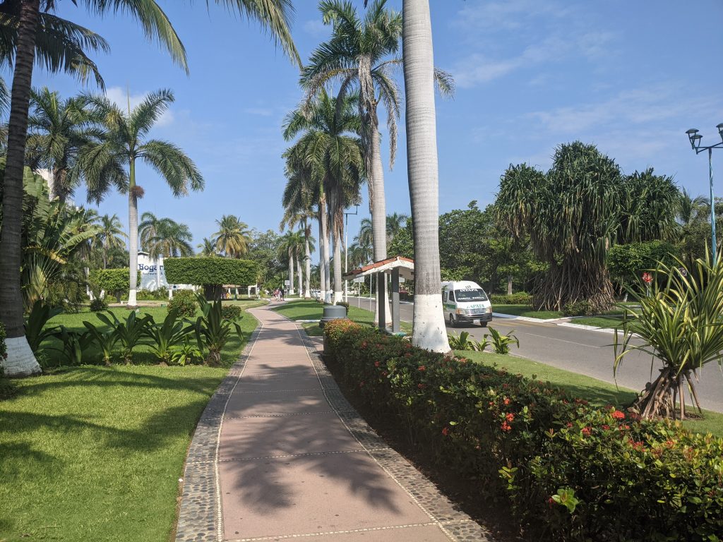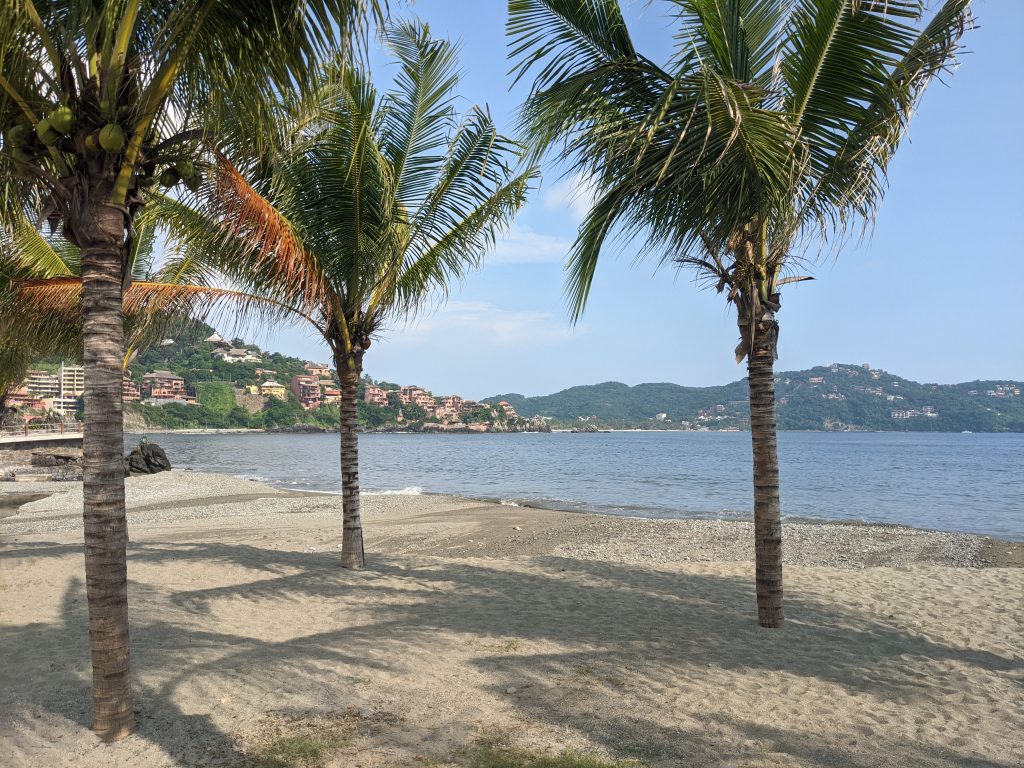 Just north of Zihuatanejo is the resort town of Ixtapa. While, Zihua is a traditional fishing town with tourism overlaid on it, Ixtapa is a planned resort area created from scratch by the Mexican government in the 1970s. While the beach is public property, Ixtapa has a ton of private condos and hotels that, except for a few gaps, block off access to most of the beach. So people can enjoy the whole beach, but have limited places to get to it.