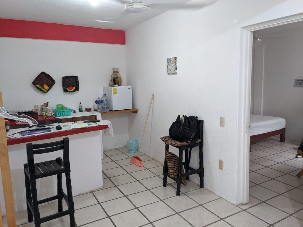 I had a very basic, inexpensive Airbnb in Zihua. The best part was the host family. They had 10 apartments there and were incredibly responsive for some of the small repair work the apartment needed. They even brought over a bottle of wine on the second day.